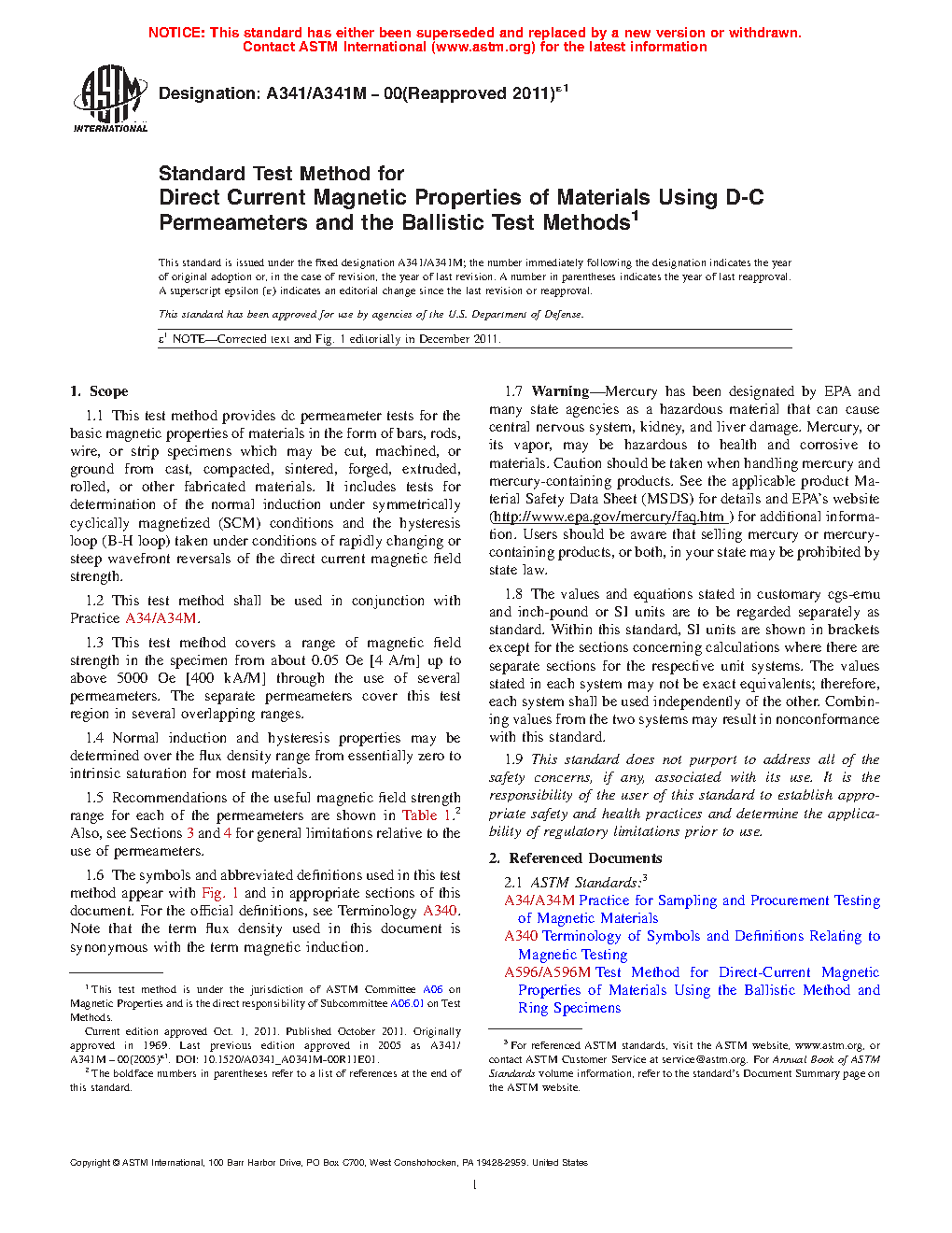 1.4 Normal induction and hysteresis properties may be determined over the flux density range from essentially zero to intrinsic saturation for most materials.