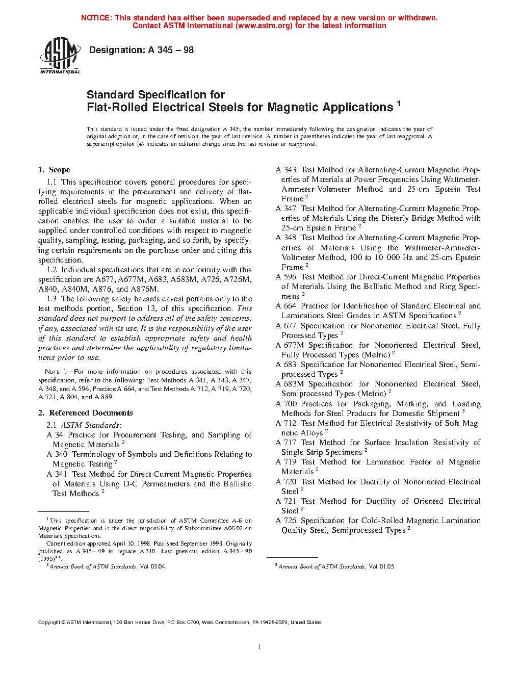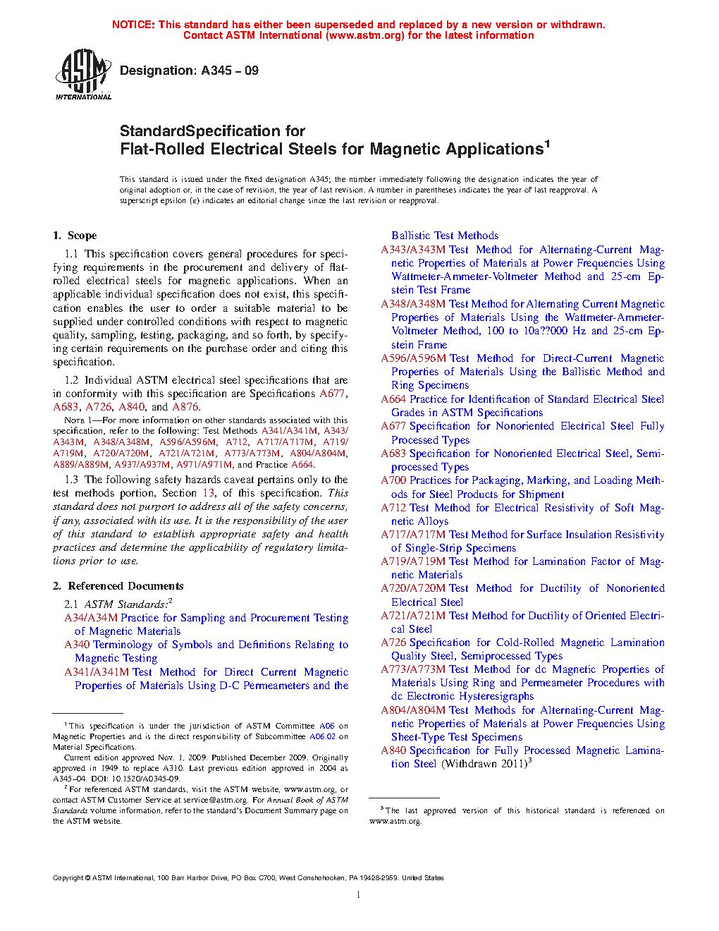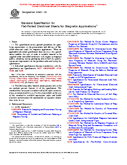 1.2 Individual ASTM electrical steel specifications that are in conformity with this specification are Specifications A677, A683, A726, A840, A876, and A1086.