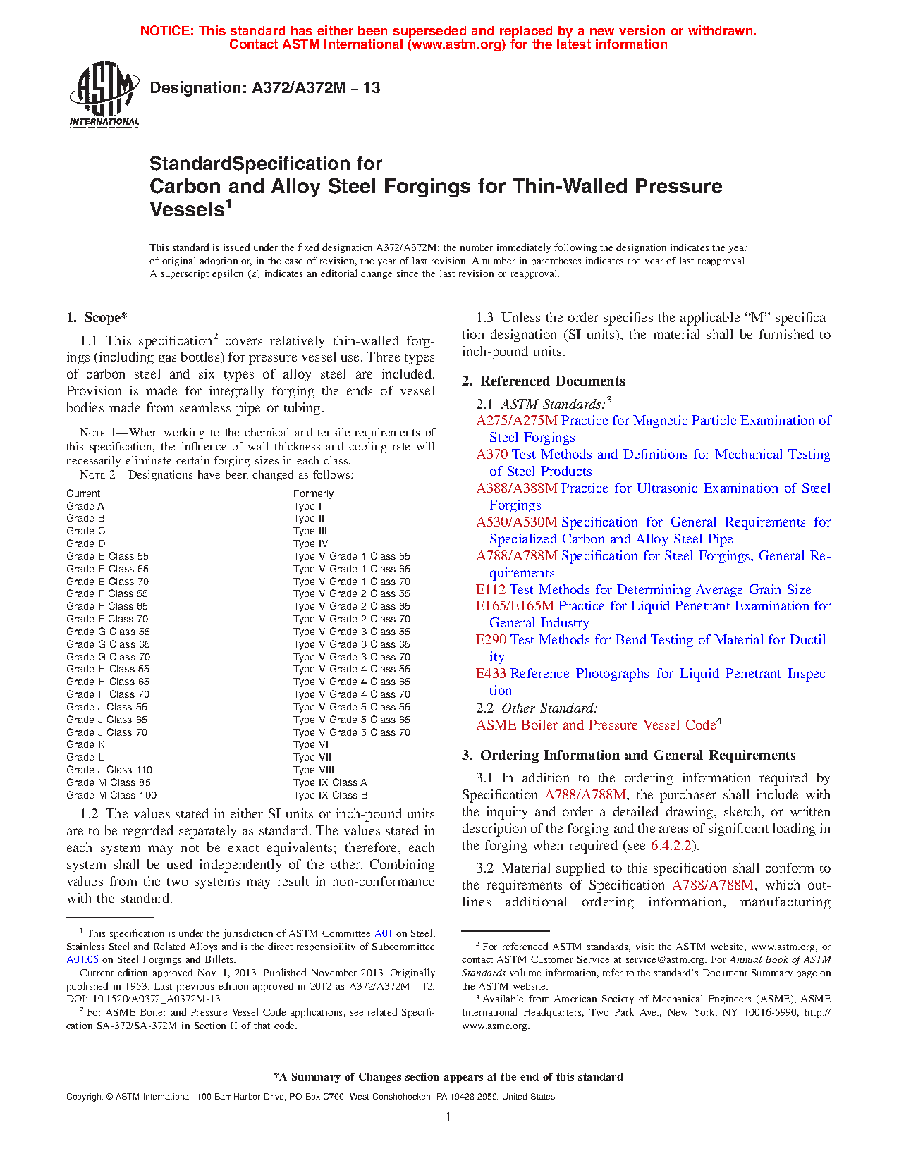 Note 2: Designations have been changed as follows: Current Formerly Grade A Type I Grade B Type II Grade C Type III Grade D Type IV Grade E Class 55 Type V Grade 1 Class 55 Grade E Class 65 Type V Grade 1 Class 65 Grade E Class 70 Type V Grade 1 Class 70 Grade F Class 55 Type V Grade 2 Class 55 Grade F Class 65 Type V Grade 2 Class 65 Grade F Class 70 Type V Grade 2 Class 70 Grade G Class 55 Type V Grade 3 Class 55 Grade G Class 65 Type V Grade 3 Class 65 Grade G Class 70 Type V Grade 3 Class 70 Grade H Class 55 Type V Grade 4 Class 55 Grade H Class 65 Type V Grade 4 Class 65 Grade H Class 70 Type V Grade 4 Class 70 Grade J Class 55 Type V Grade 5 Class 55 Grade J Class 65 Type V Grade 5 Class 65 Grade J Class 70 Type V Grade 5 Class 70 Grade K Type VI Grade L Type VII Grade J Class 110 Type VIII Grade M Class 85 Type IX Class A Grade M Class 100 Type IX Class B