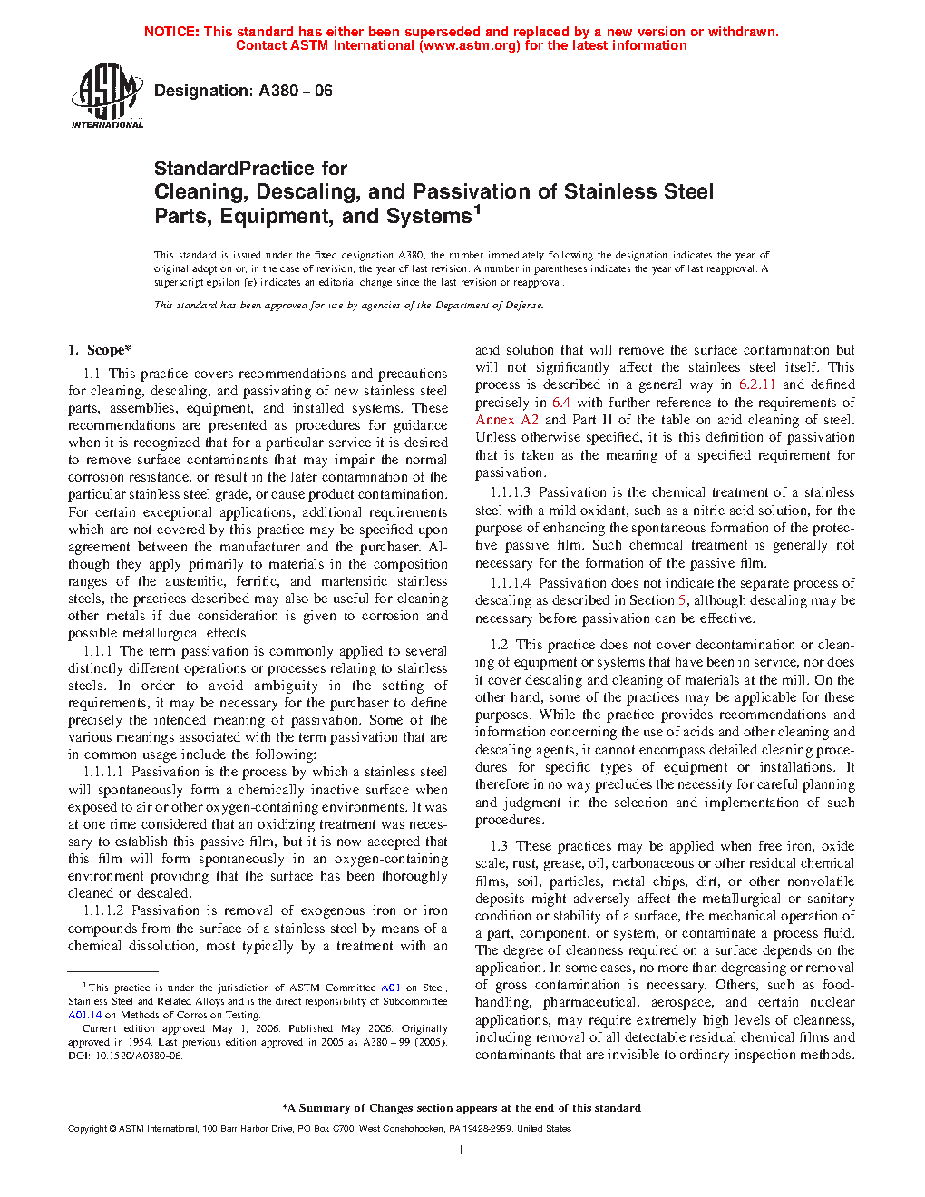1.1.1.4 Passivation does not indicate the separate process of descaling as described in Section 5, although descaling may be necessary before passivation can be effective.