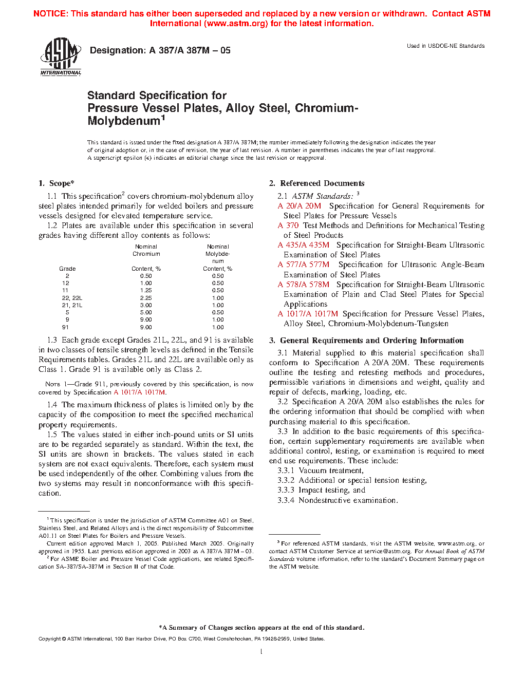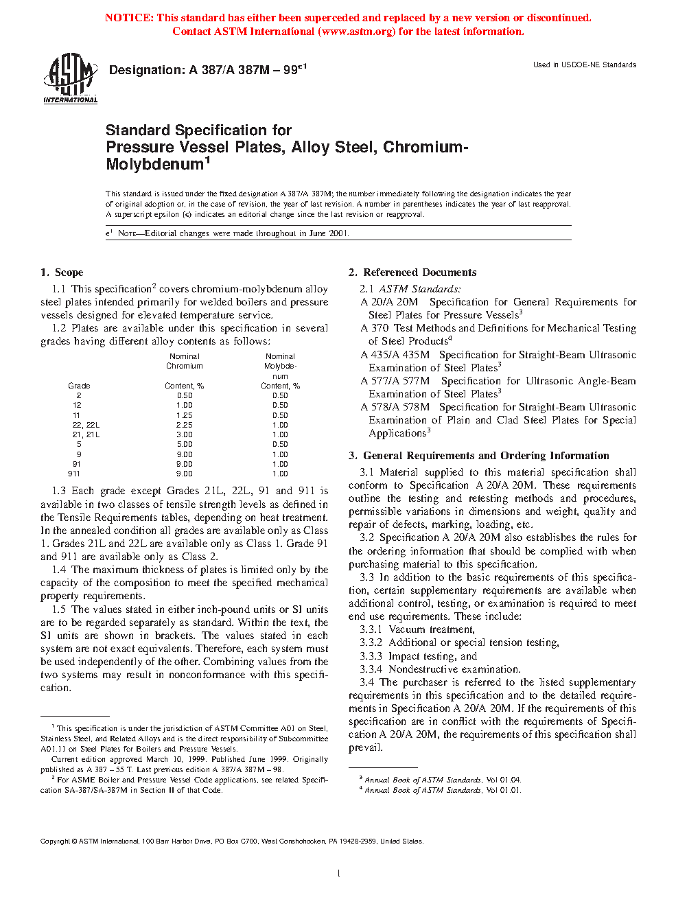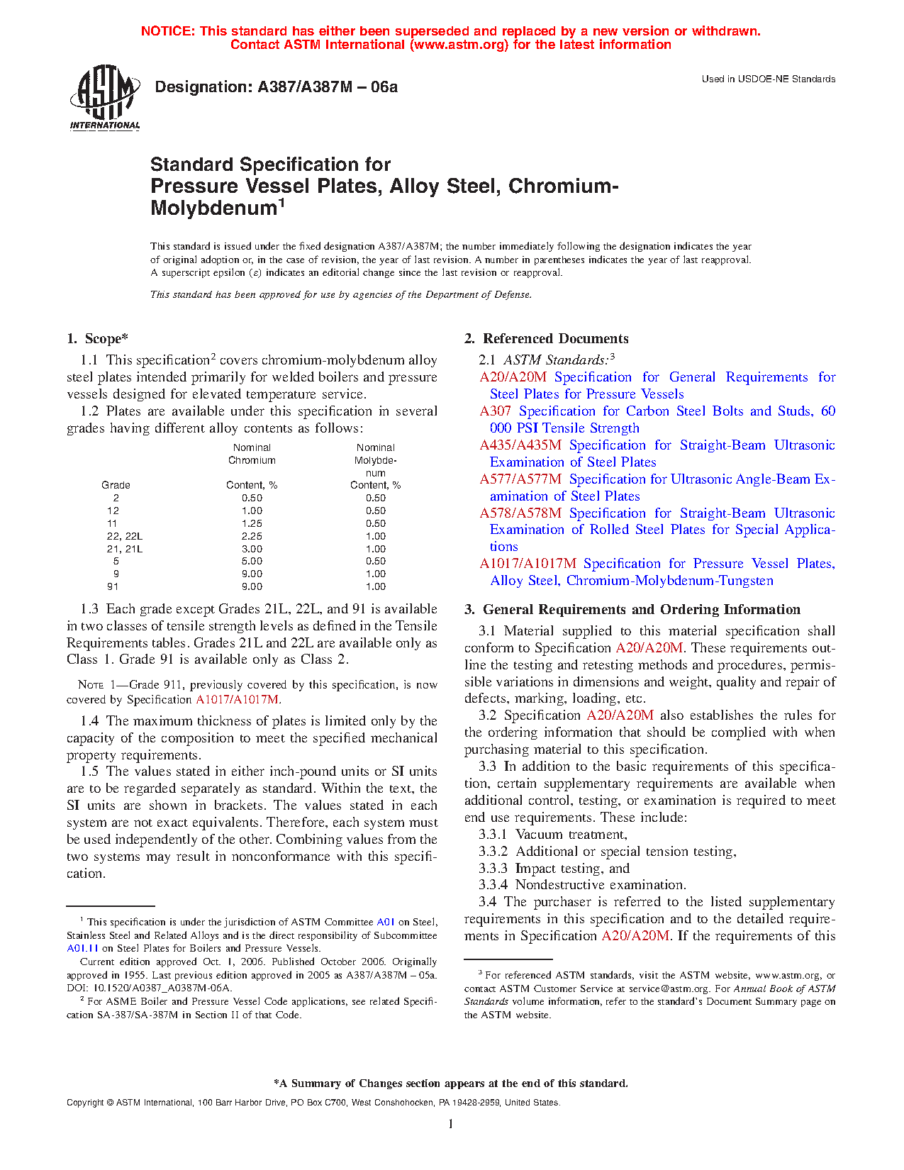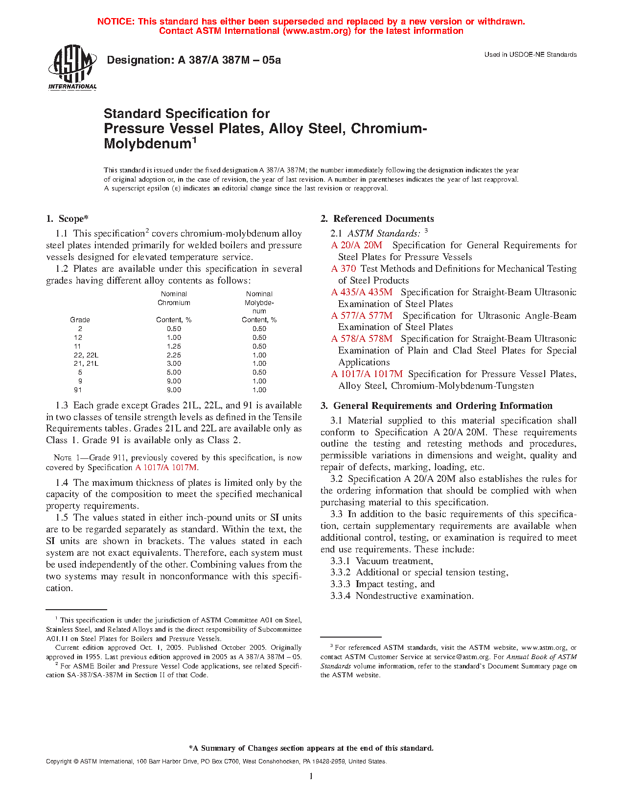 1.1 This specification2 covers chromium-molybdenum alloy steel plates intended primarily for welded boilers and pressure vessels designed for elevated temperature service.