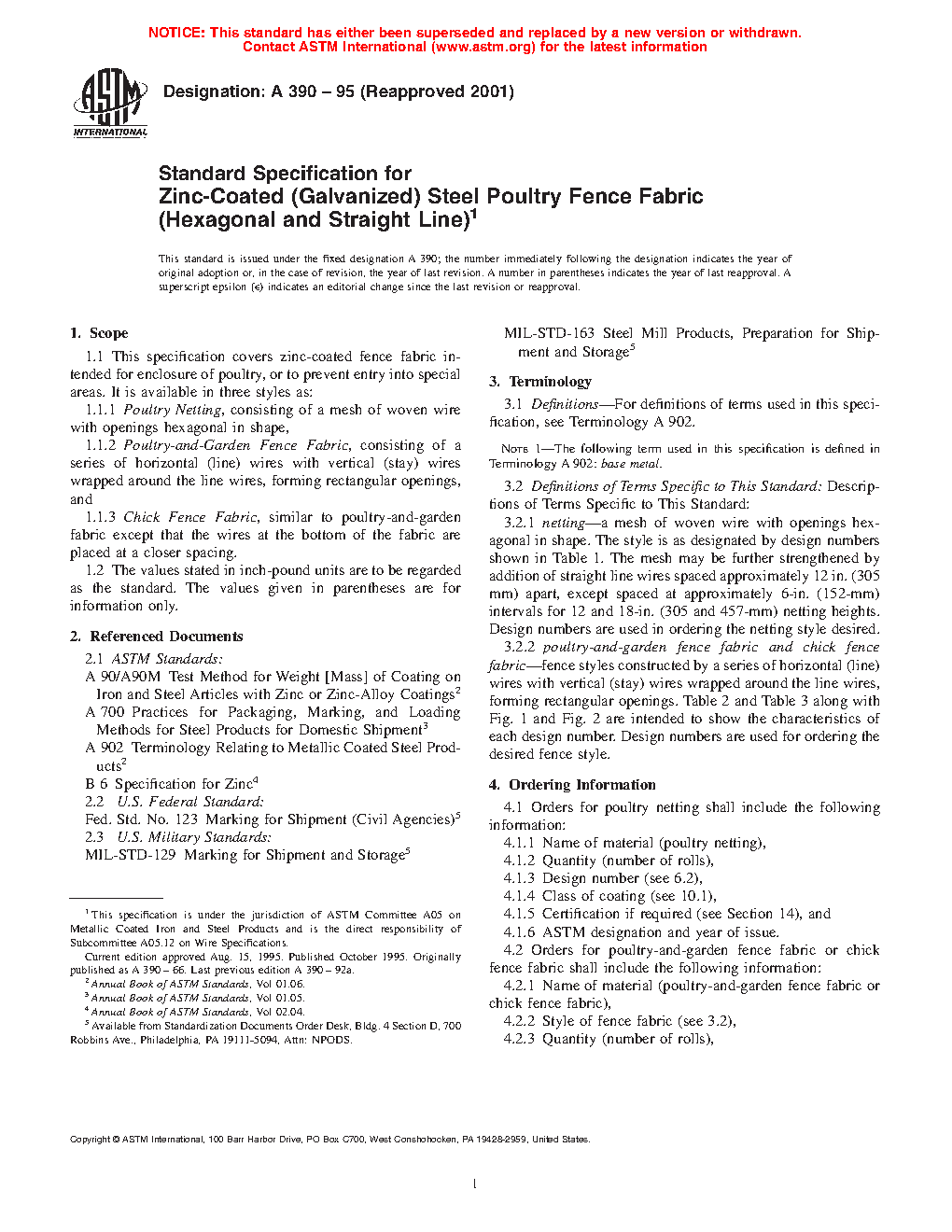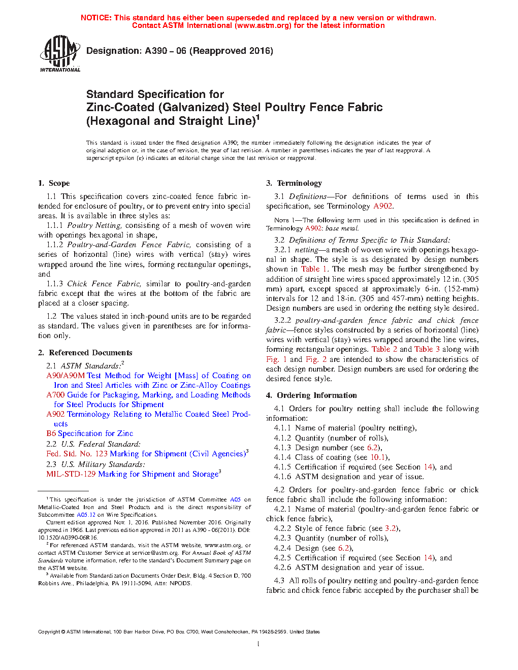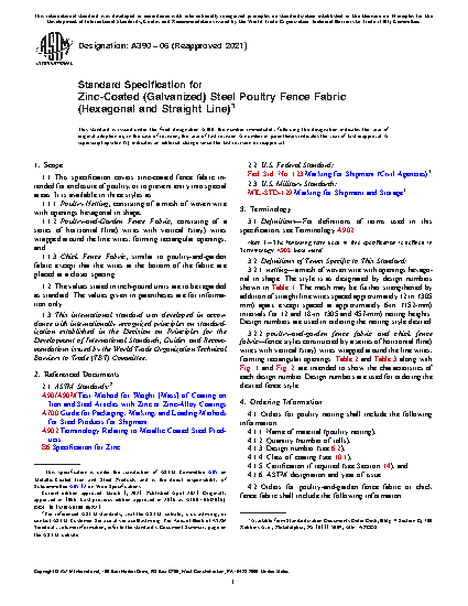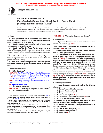 1.1 This specification covers zinc-coated fence fabric intended for enclosure of poultry, or to prevent entry into special areas. It is available in three styles as: