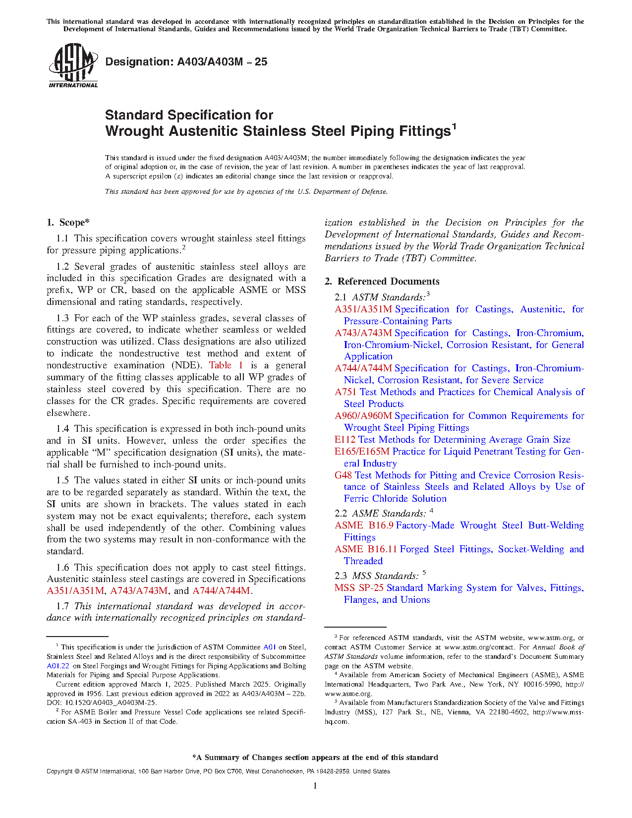 1.2 Several grades of austenitic stainless steel alloys are included in this specification Grades are designated with a prefix, WP or CR, based on the applicable ASME or MSS dimensional and rating standards, respectively.