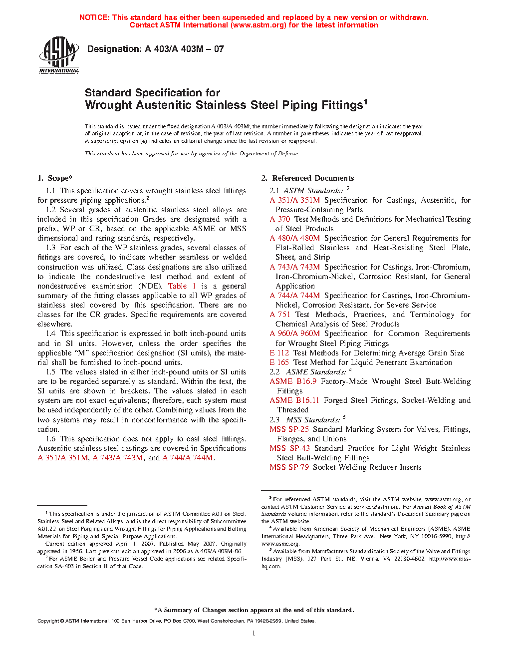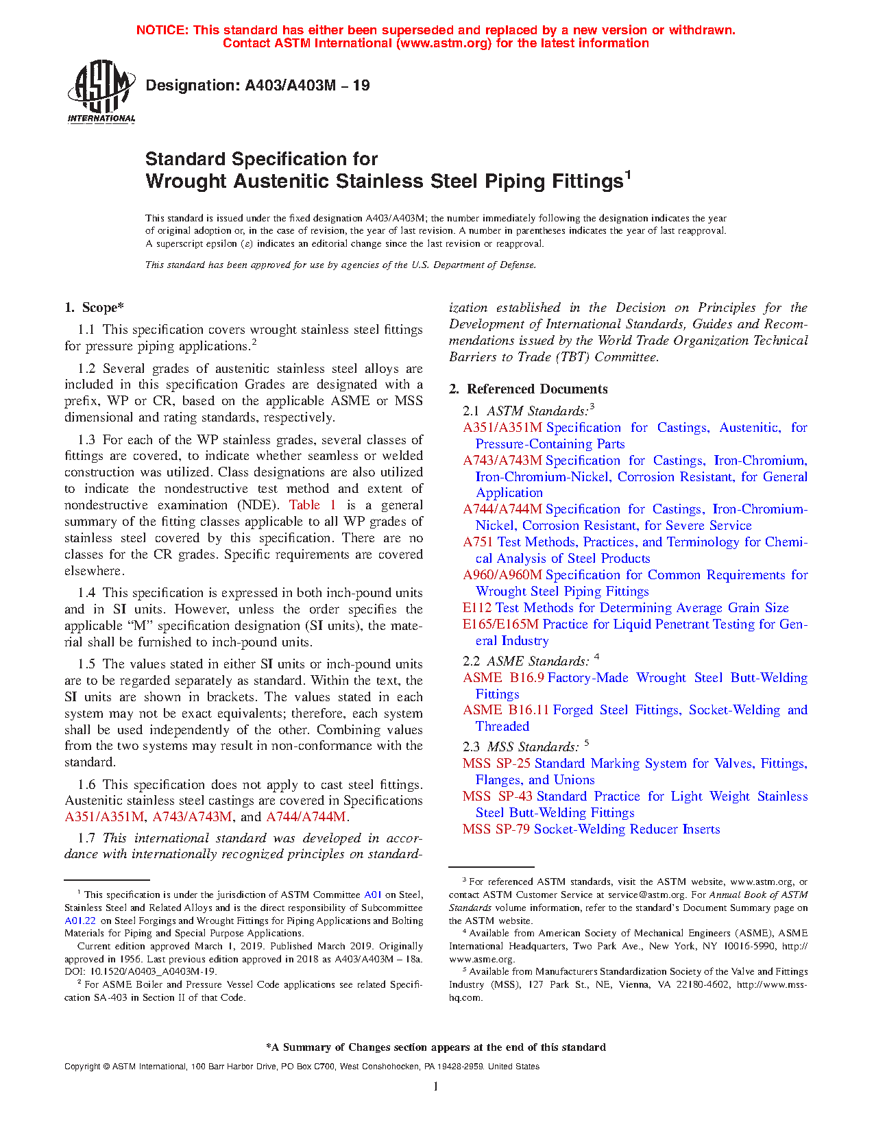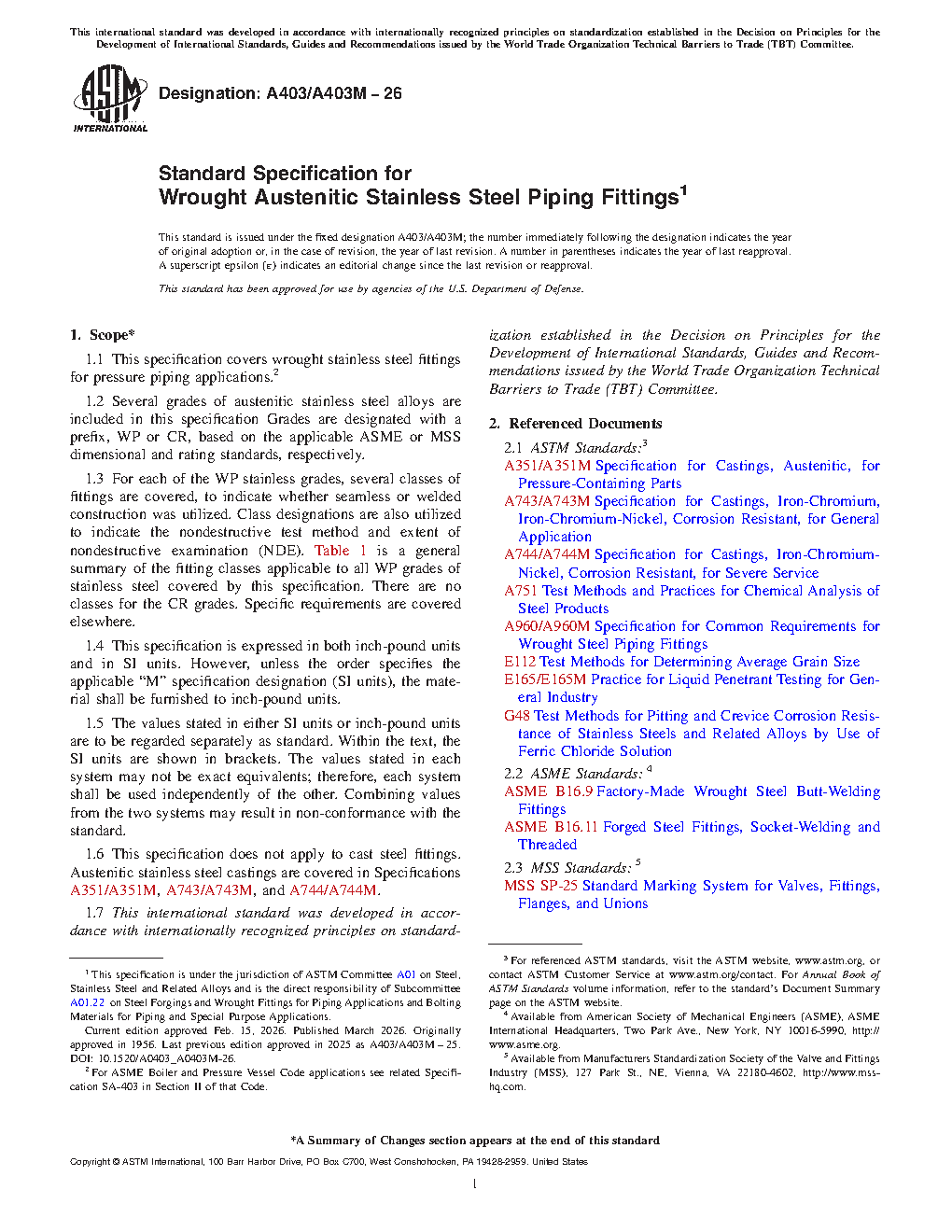 1.2 Several grades of austenitic stainless steel alloys are included in this specification Grades are designated with a prefix, WP or CR, based on the applicable ASME or MSS dimensional and rating standards, respectively.