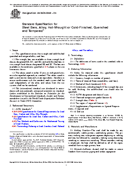 1.1 This specification covers hot-wrought and cold-finished quenched and tempered alloy steel bars.