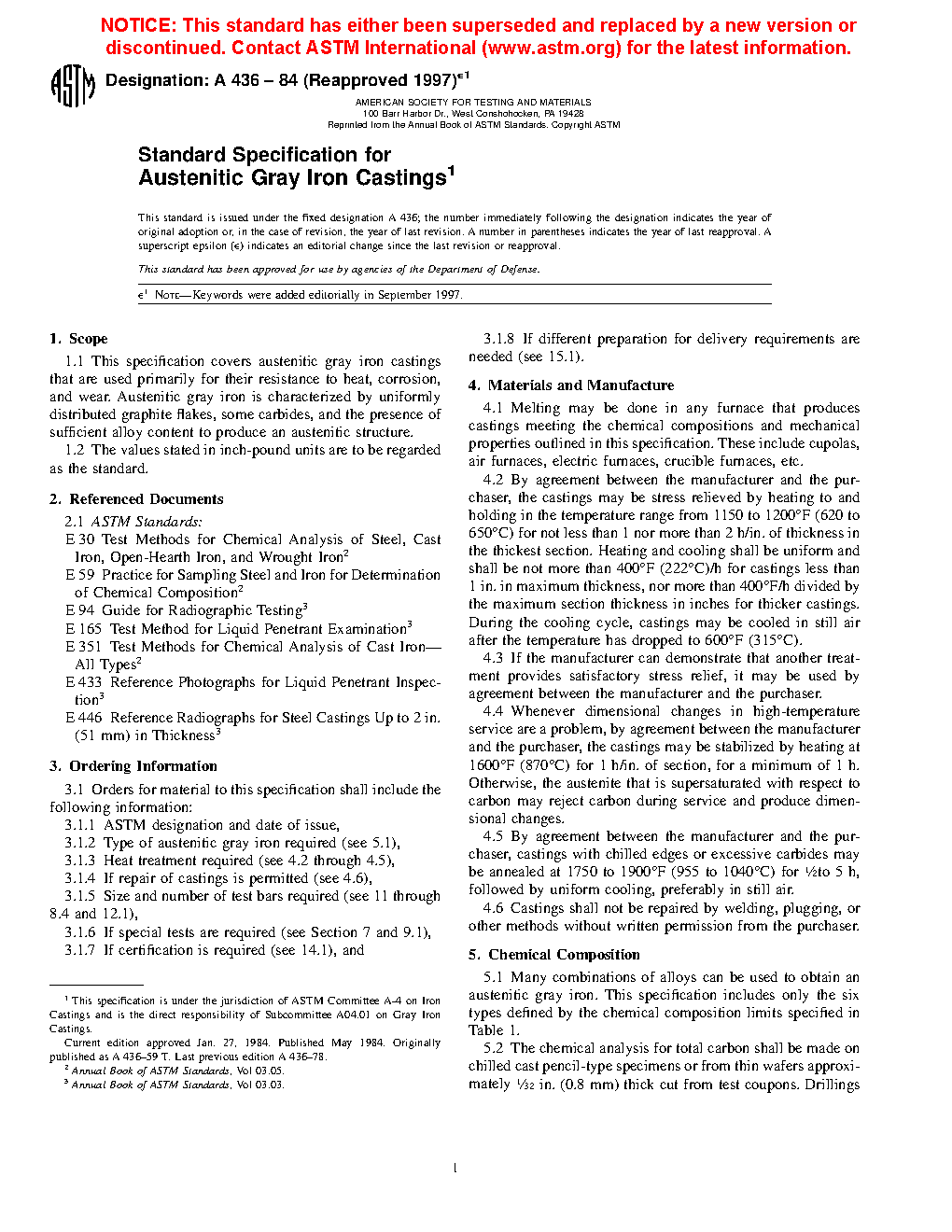 ASTM A436-84(1997)e1 (R1984)