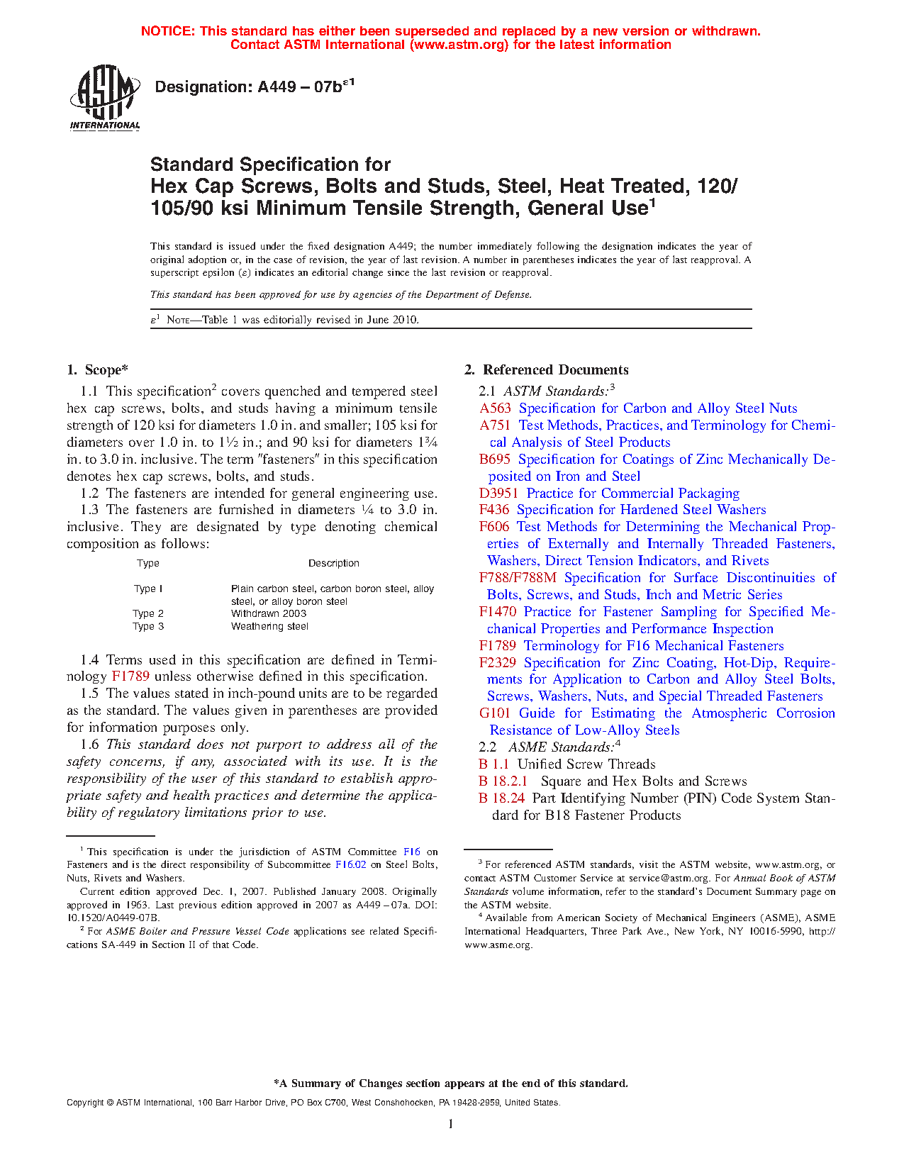 1.2 The two types of bolts covered in this specification are: