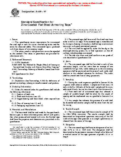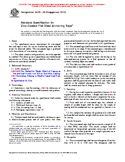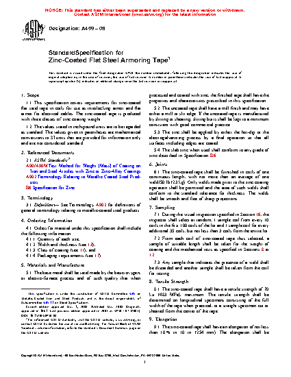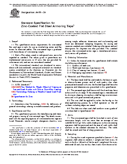 Standard Specification for Zinc-Coated Flat Steel Armoring Tape