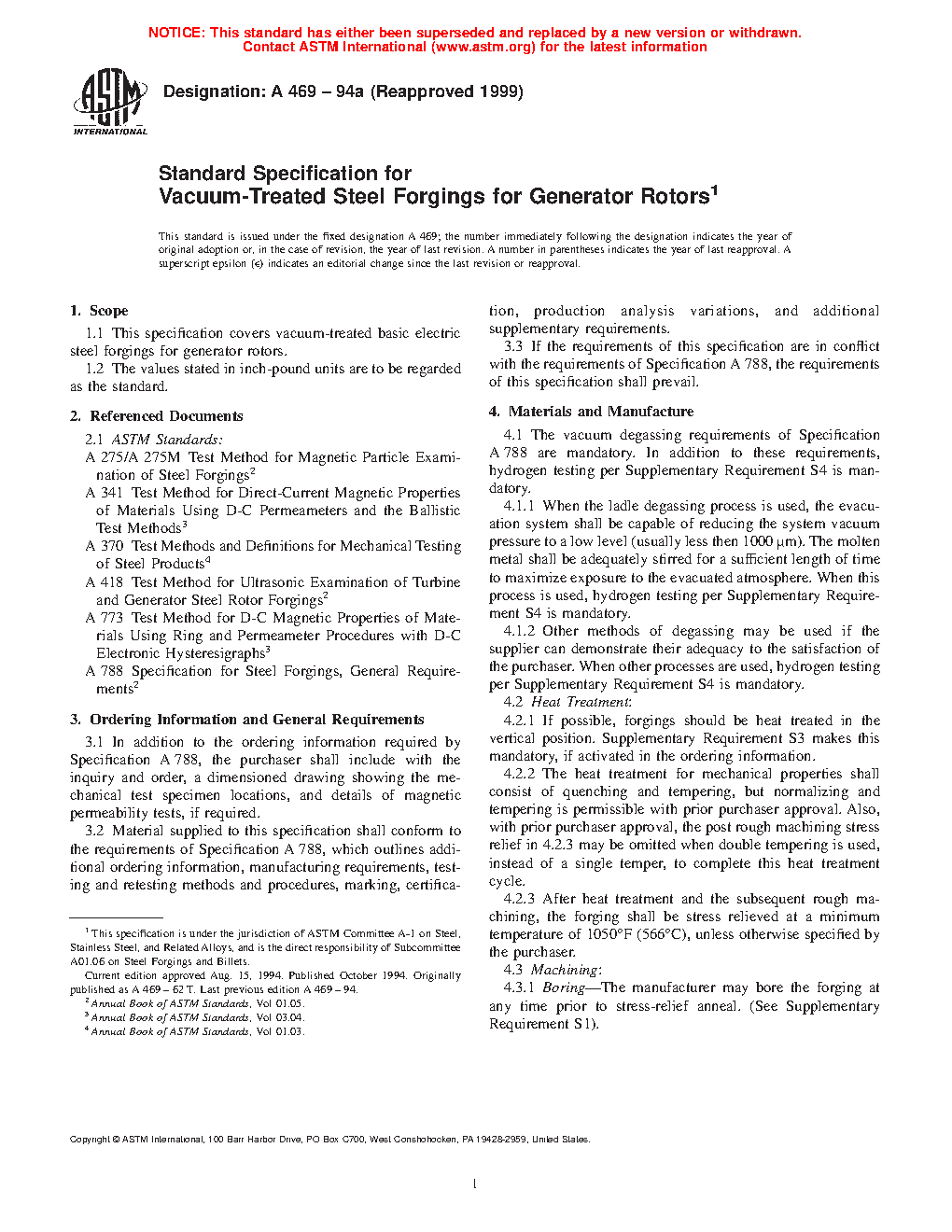 1.1 This specification covers vacuum-treated basic electric steel forgings for generator rotors.