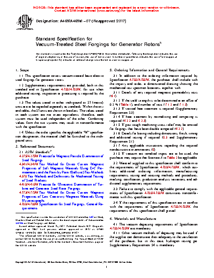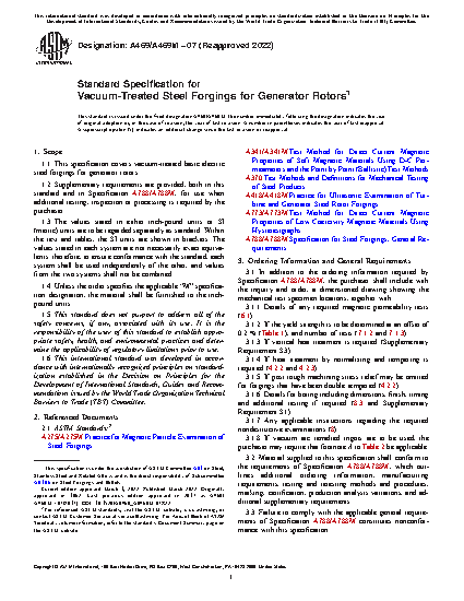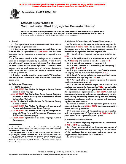 1.1 This specification covers vacuum-treated basic electric steel forgings for generator rotors.