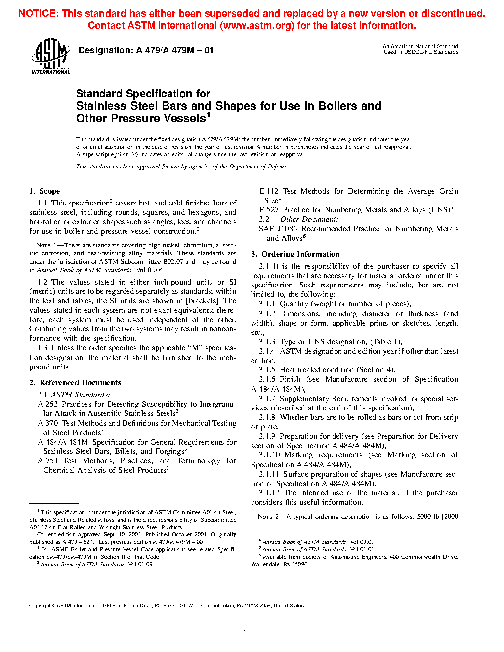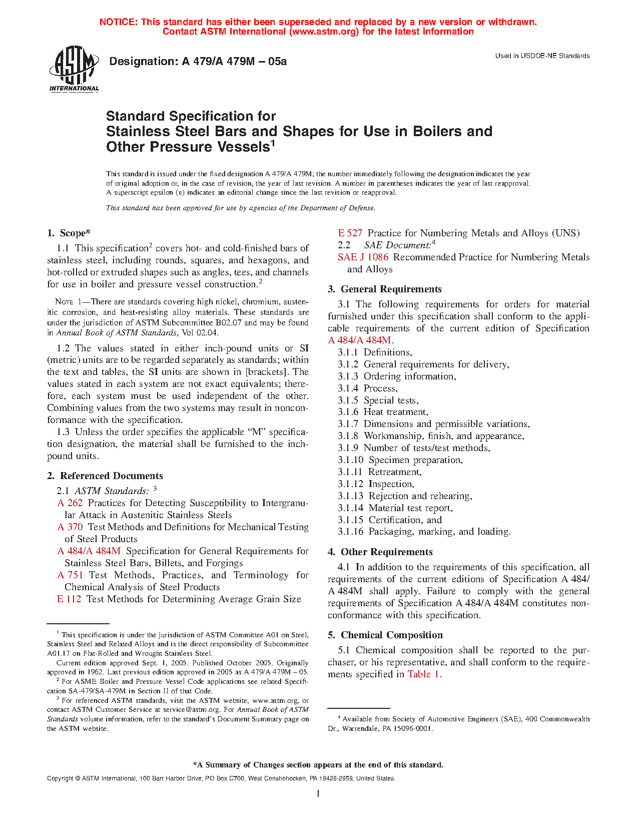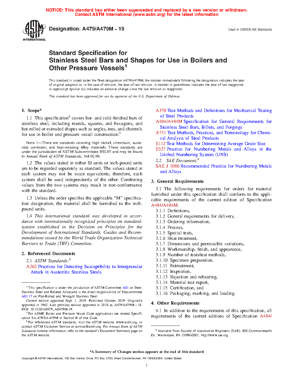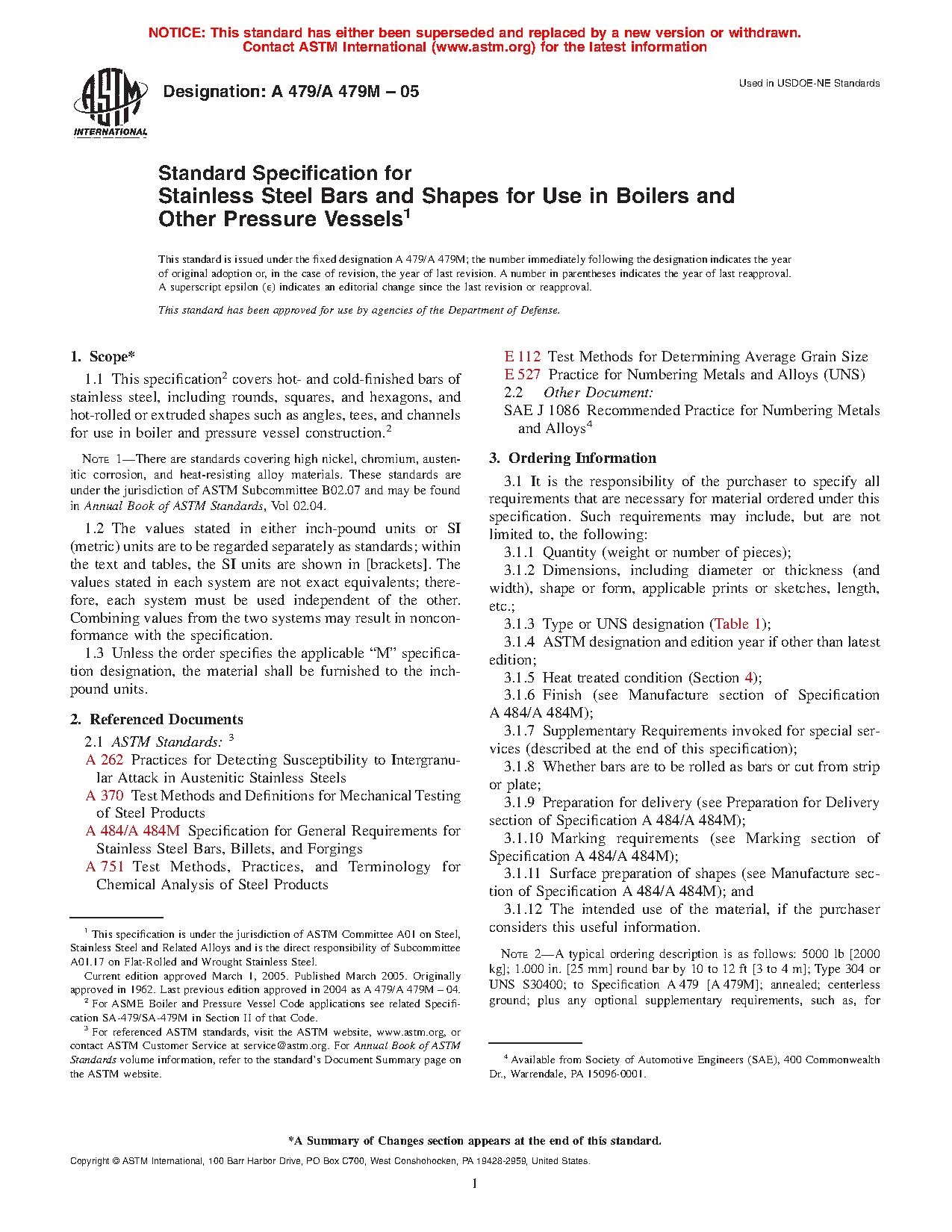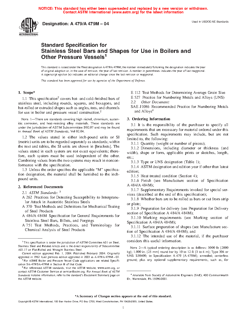 1.1 This specification2 covers hot- and cold-finished bars of stainless steel, including rounds, squares, and hexagons, and hot-rolled or extruded shapes such as angles, tees, and channels for use in boiler and pressure vessel construction.2