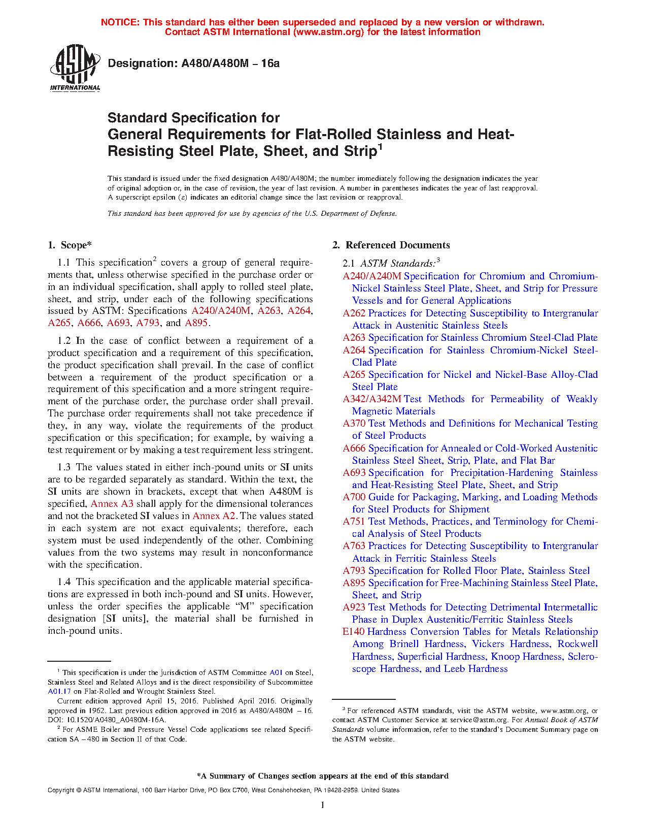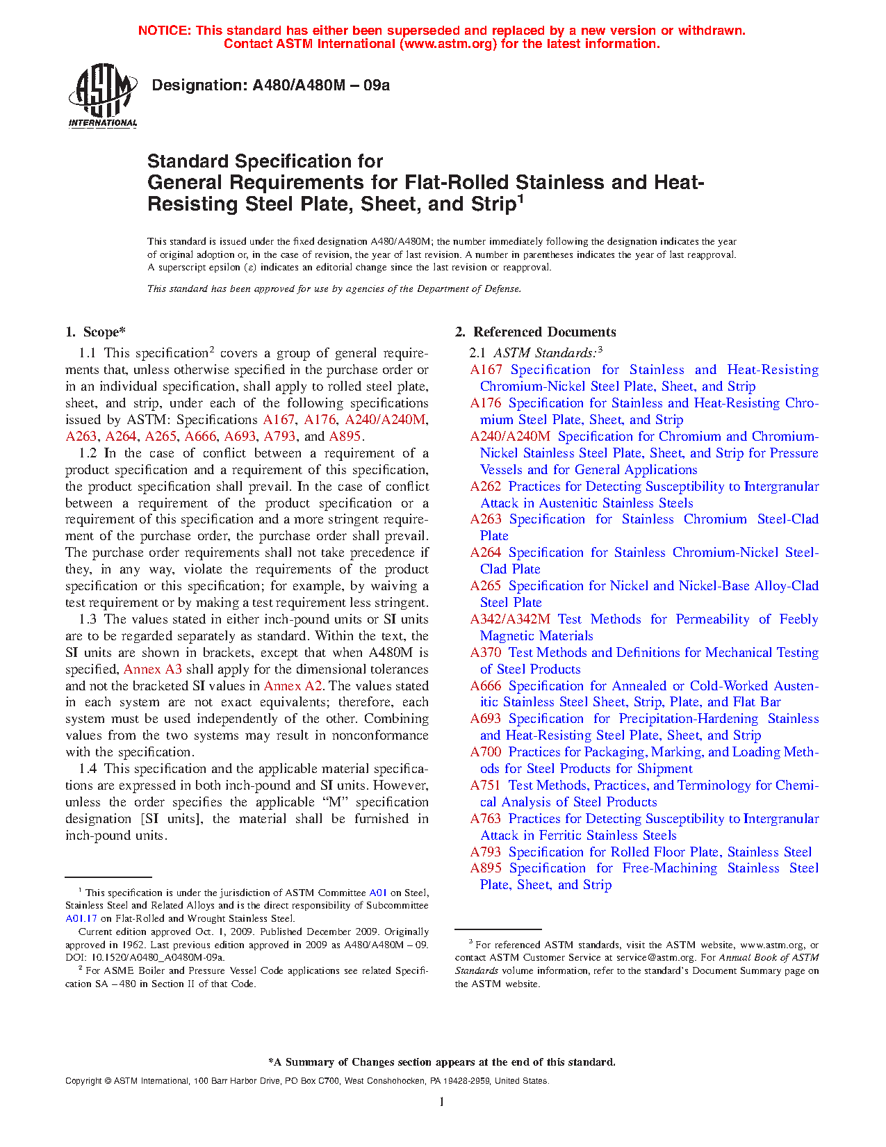 1.1 This specification2 covers a group of general requirements that, unless otherwise specified in the purchase order or in an individual specification, shall apply to rolled steel plate, sheet, and strip, under each of the following specifications issued by ASTM: Specifications A240/A240M, A263, A264, A265, A666, A693, A793, and A895.