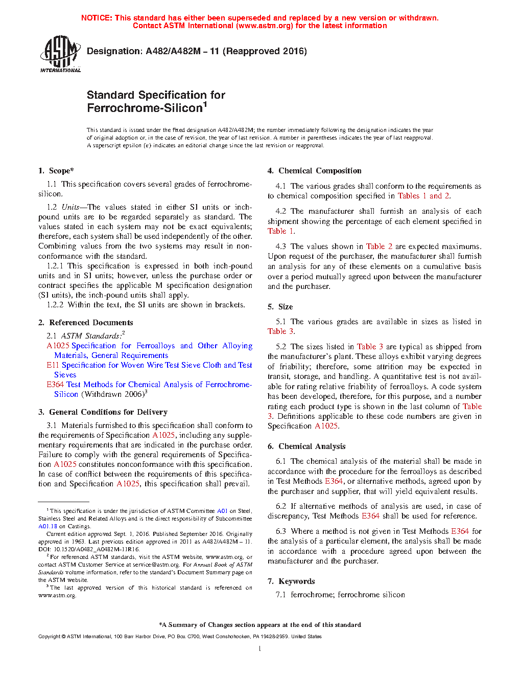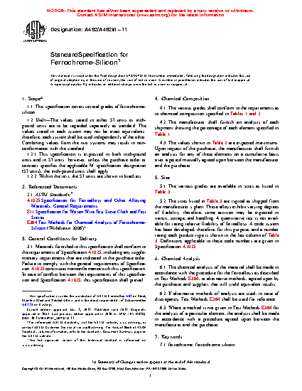 1.1 This specification covers several grades of ferrochrome-silicon.