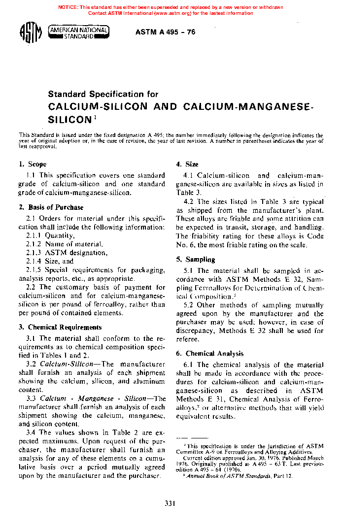 1.1 This specification covers a standard grade of calcium-silicon, a standard grade of calcium-manganese-silicon, a standard grade of calcium-silicon-barium, and a standard grade of ferro-calcium-silicon.