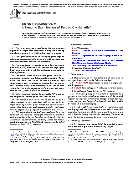 1.1 This is an acceptance specification for the ultrasonic inspection of forged steel crankshafts having main bearing journals or crankpins 4 in. [100 mm] or larger in diameter.
