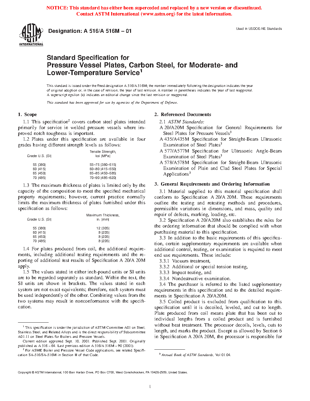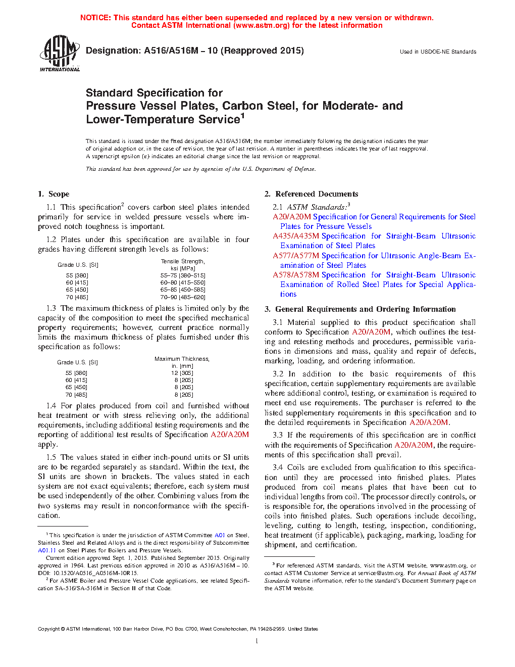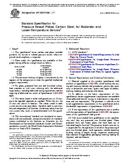 1.1 This specification2 covers carbon steel plates intended primarily for service in welded pressure vessels where improved notch toughness is important.