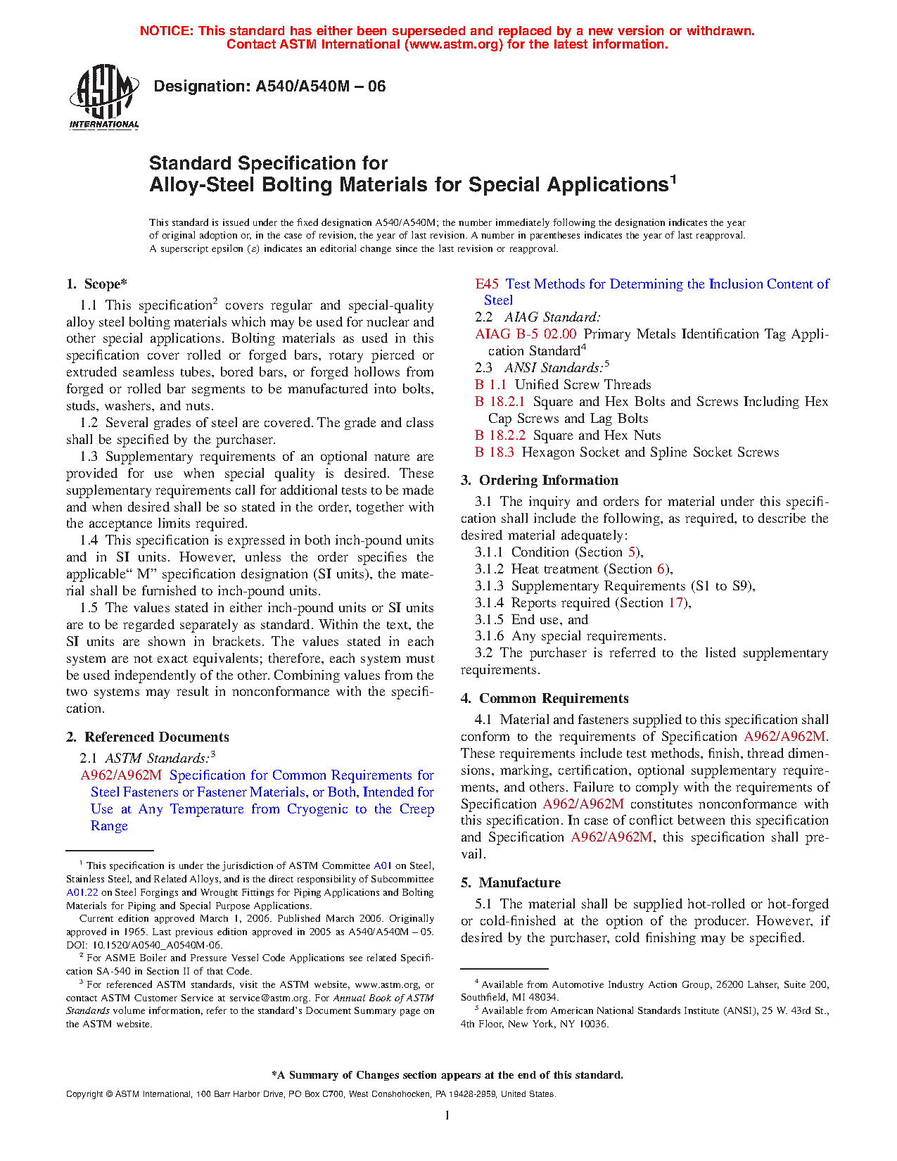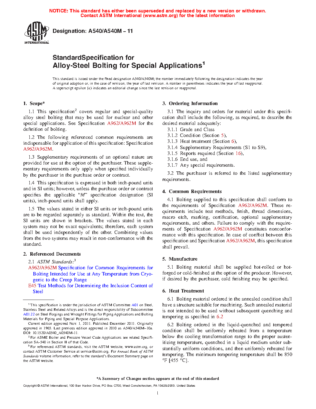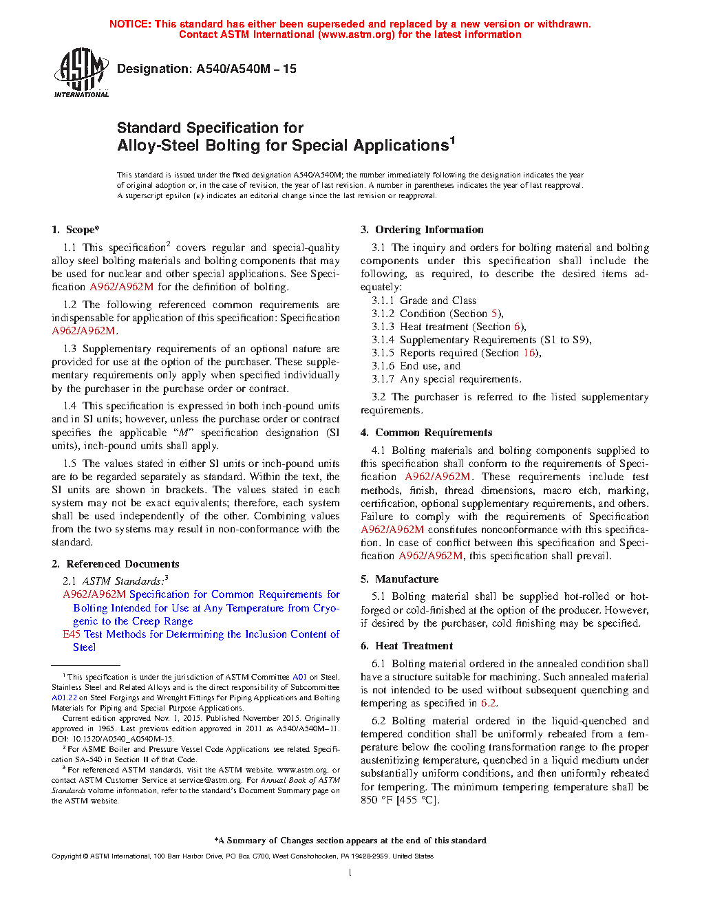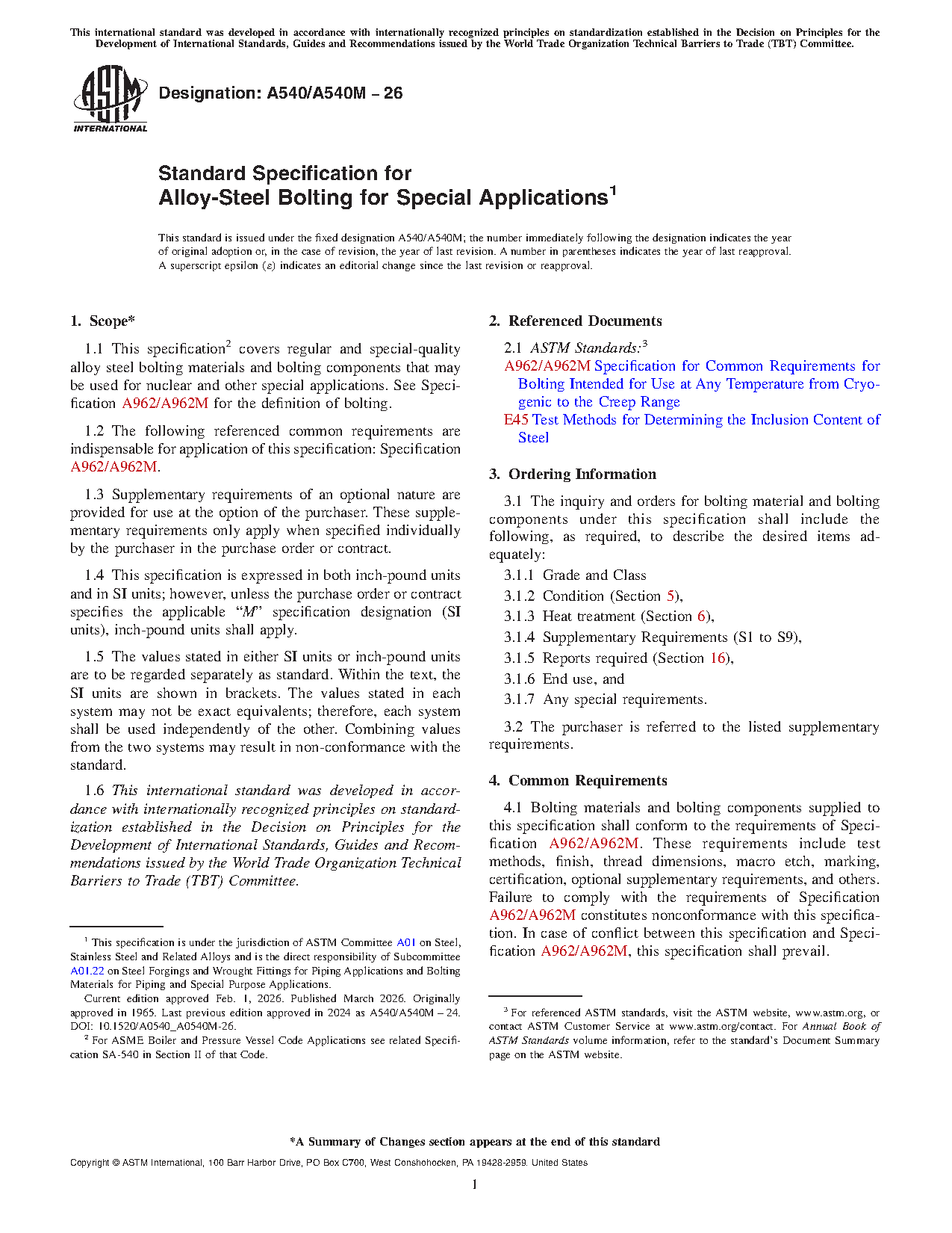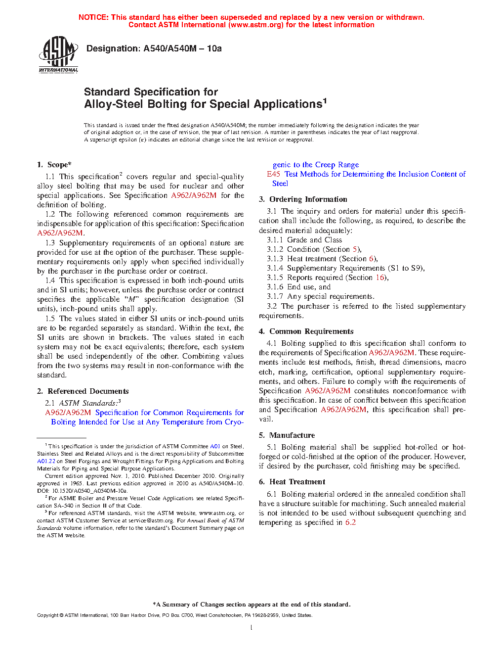 1.1 This specification covers regular and special-quality alloy steel bolting that may be used for nuclear and other special applications. See Specification for the definition of bolting.