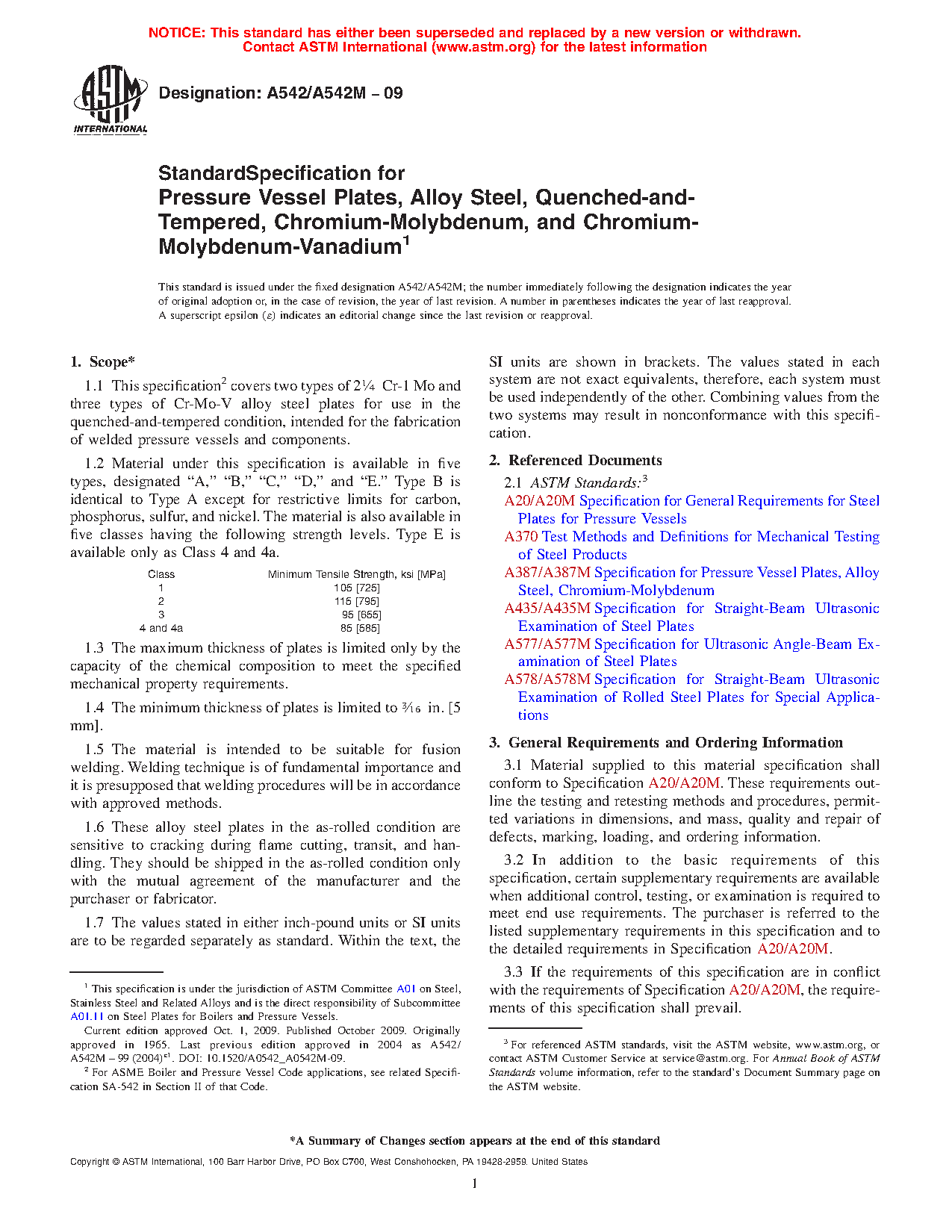 | Class | Minimum Tensile Strength, ksi [MPa] |