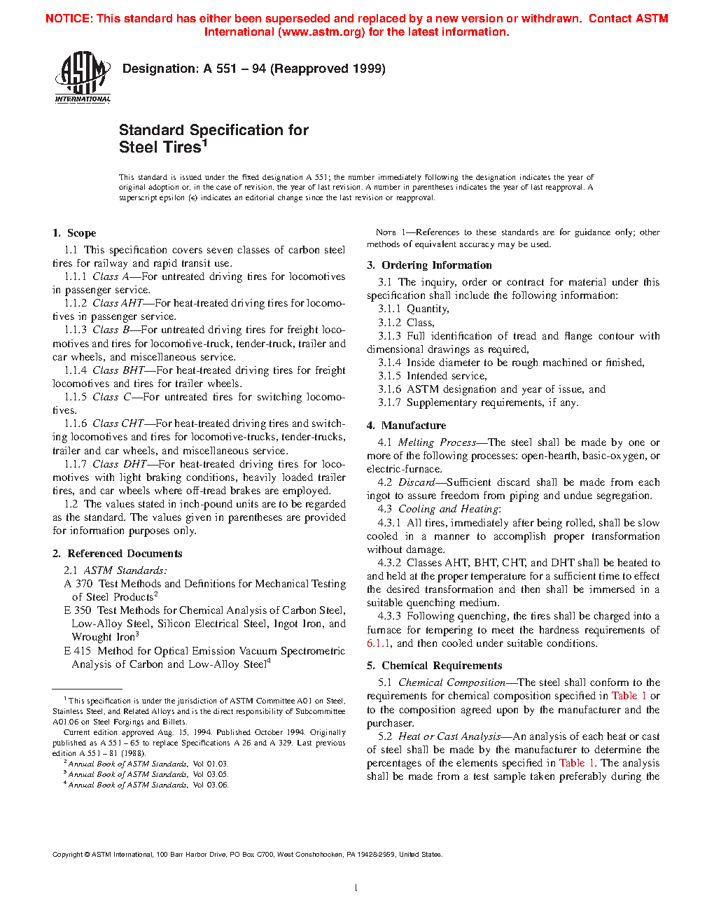1.1.6 Class CHTFor heat-treated driving tires and switching locomotives and tires for locomotive-trucks, tender-trucks, trailer and car wheels, and miscellaneous service.