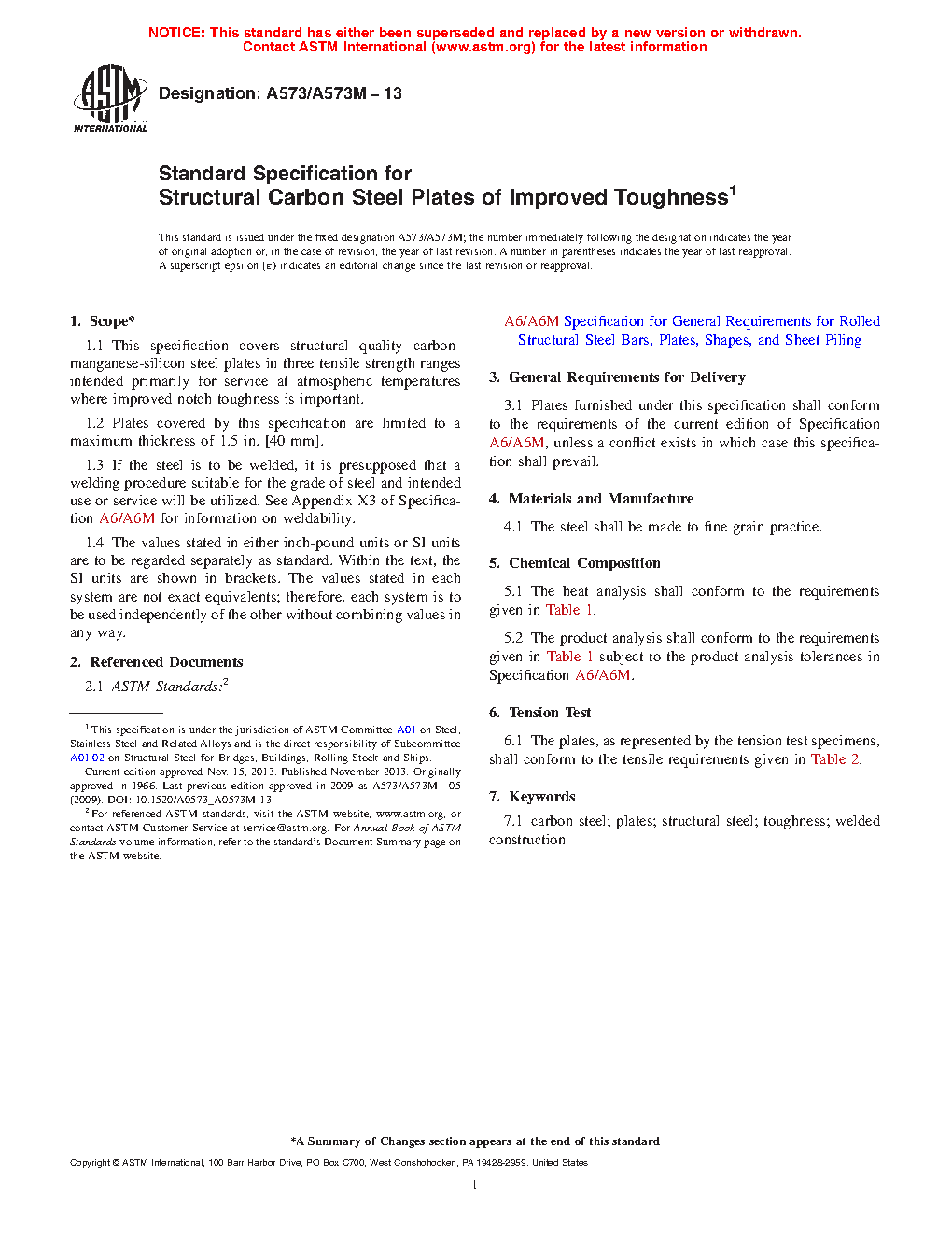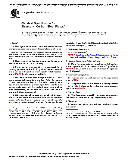 1.1 This specification covers structural quality carbon-manganese-silicon steel plates in three tensile strength ranges intended primarily for service at atmospheric temperatures where improved notch toughness is important.