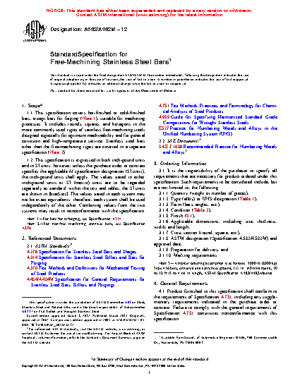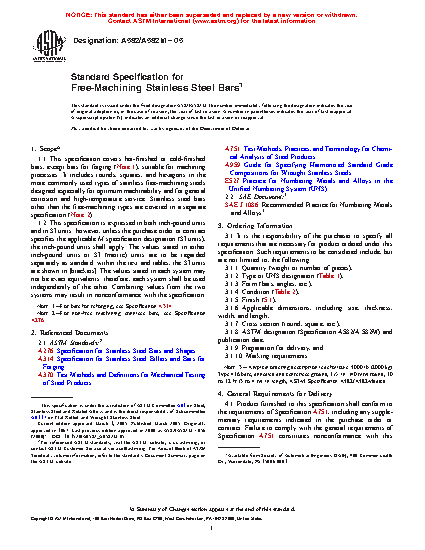 Note 2: For non-free machining stainless bars, see Specification A276.