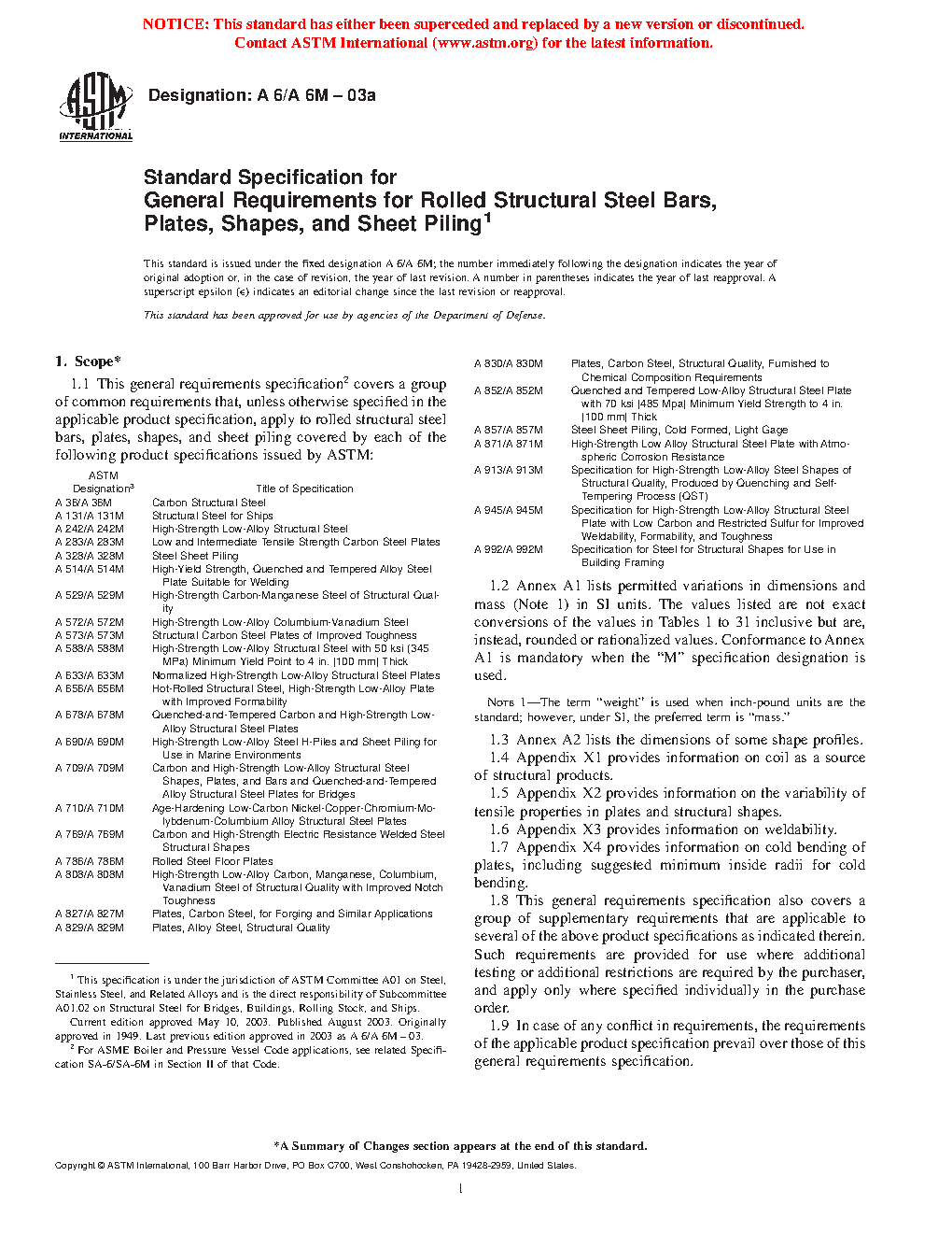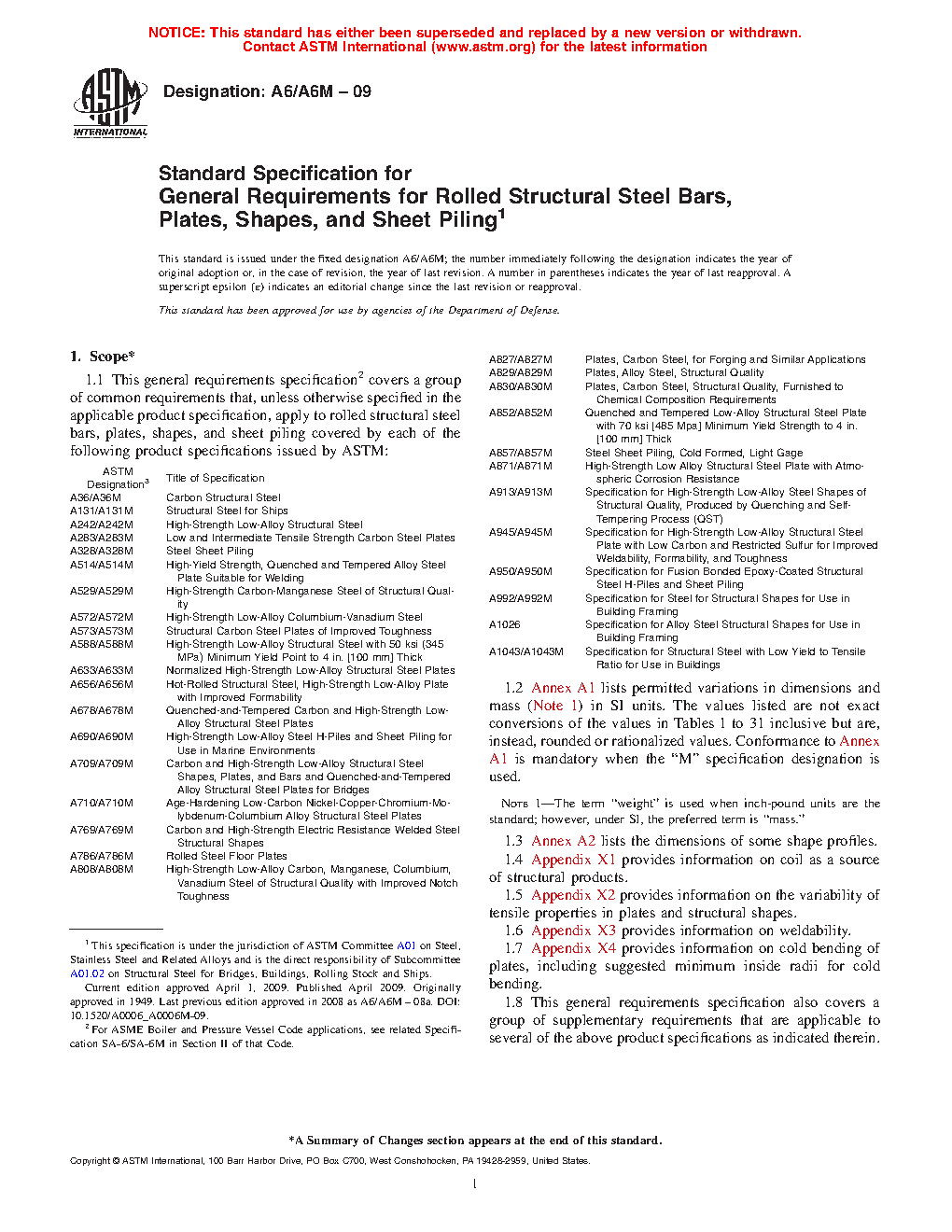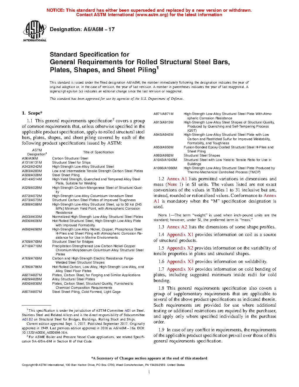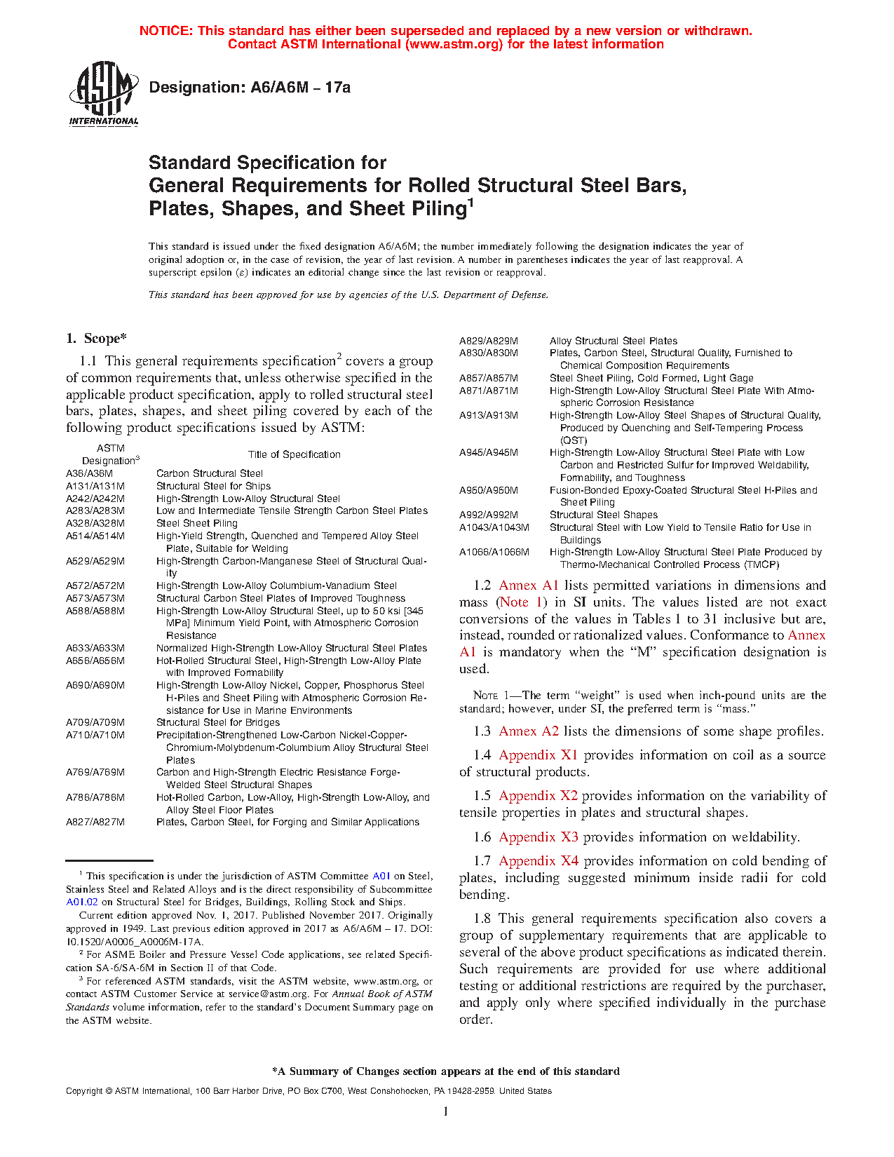 1.1 This general requirements specification2 covers a group of common requirements that, unless otherwise specified in the applicable product specification, apply to rolled structural steel bars, plates, shapes, and sheet piling covered by each of the following product specifications issued by ASTM: