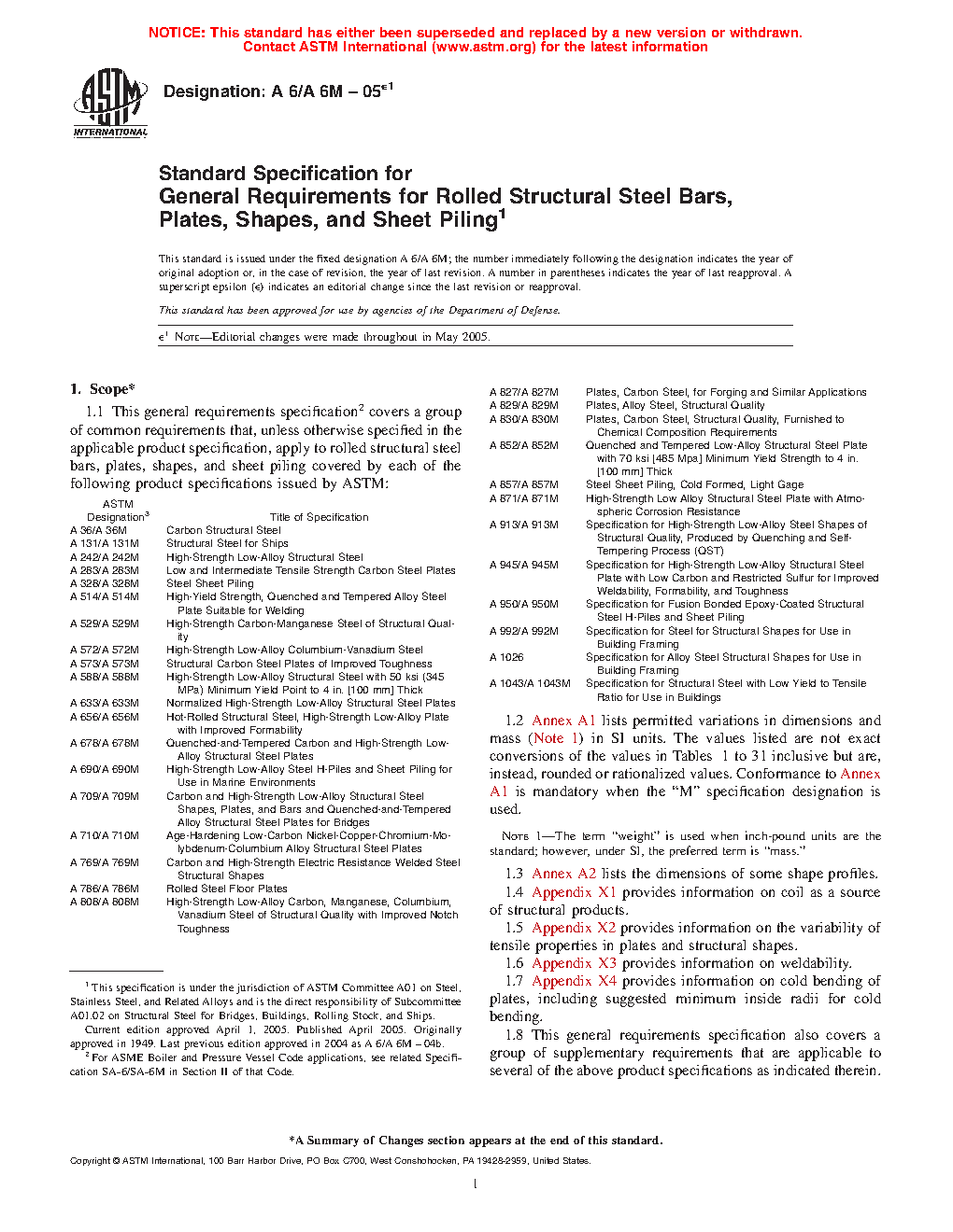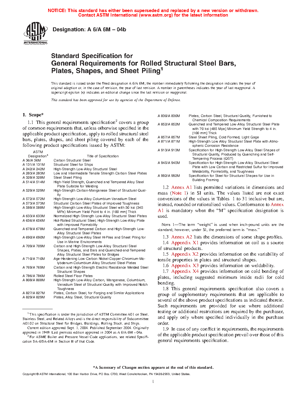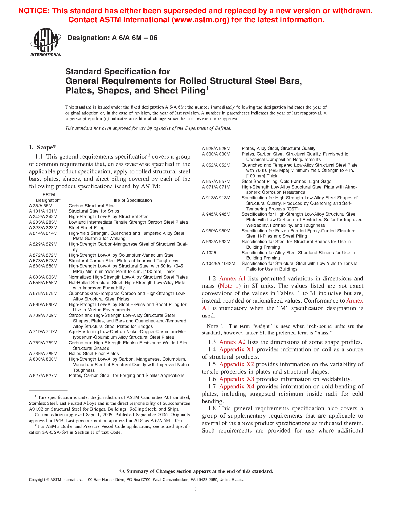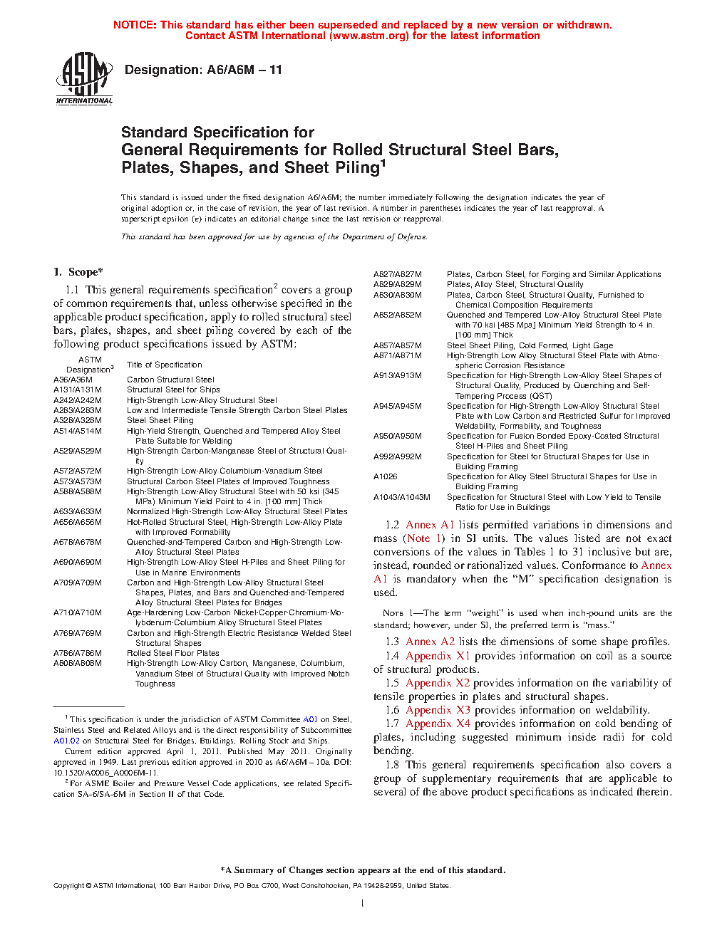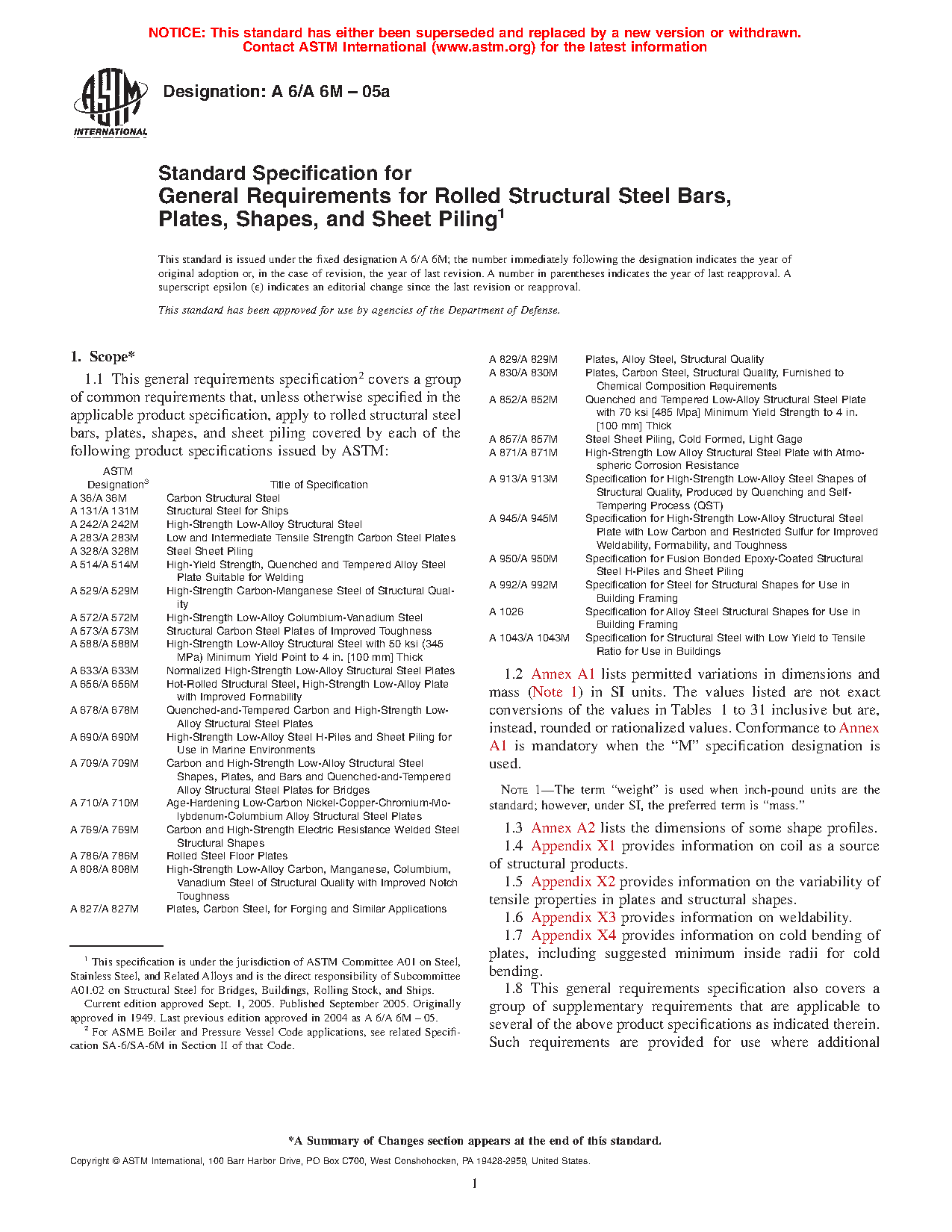 1.1 This general requirements specification2 covers a group of common requirements that, unless otherwise specified in the applicable product specification, apply to rolled structural steel bars, plates, shapes, and sheet piling covered by each of the following product specifications issued by ASTM: