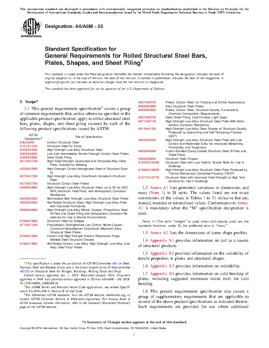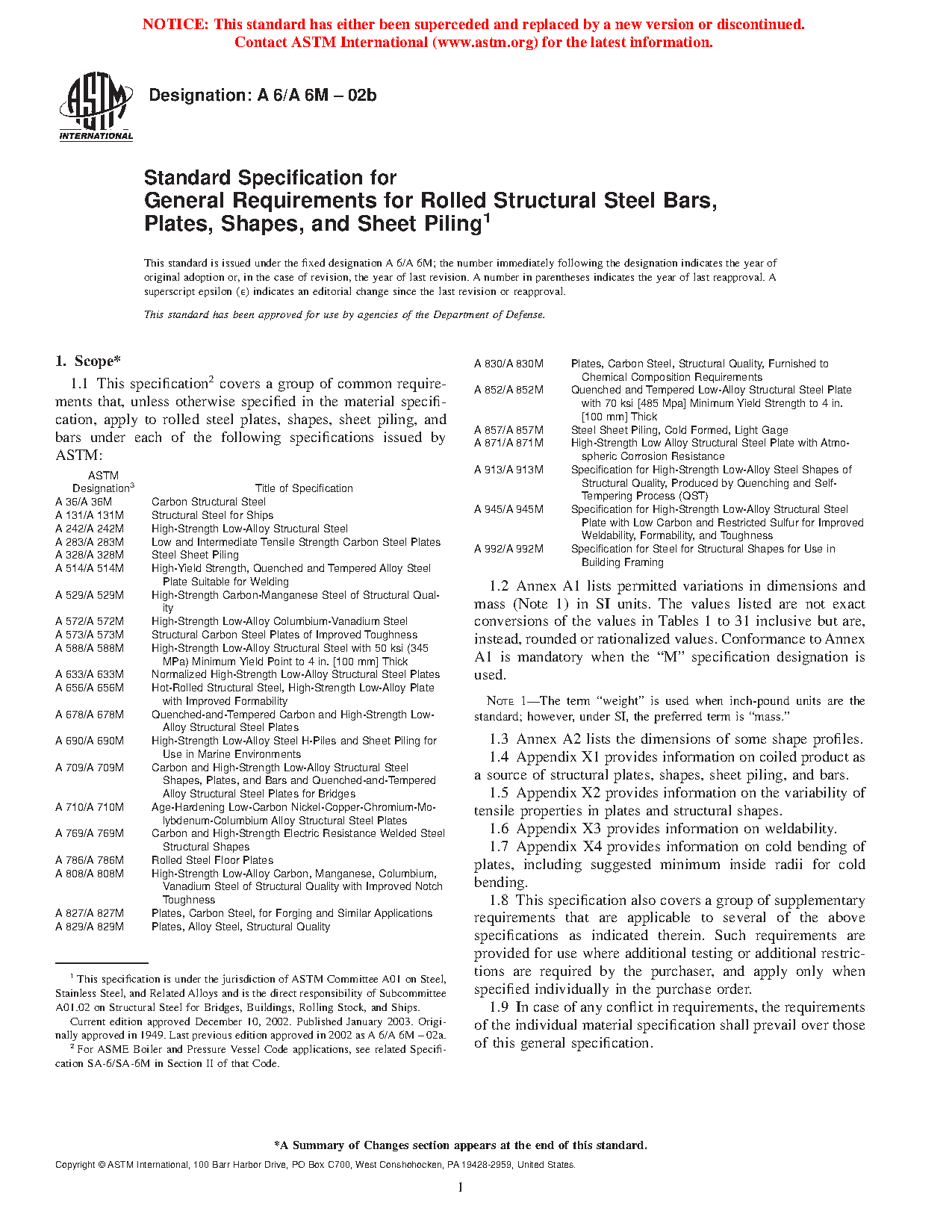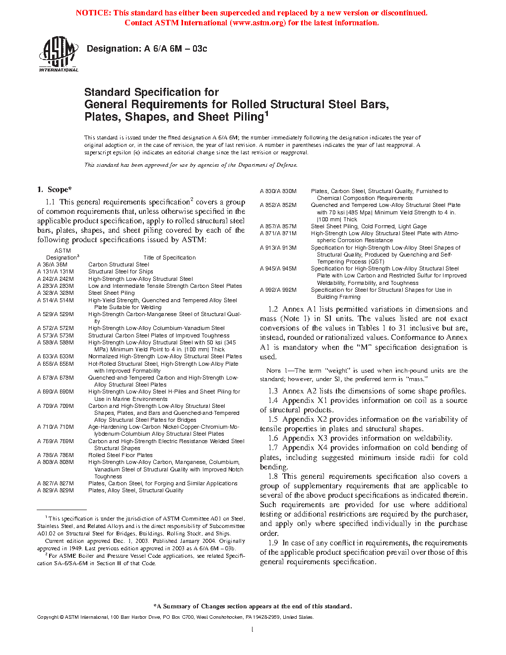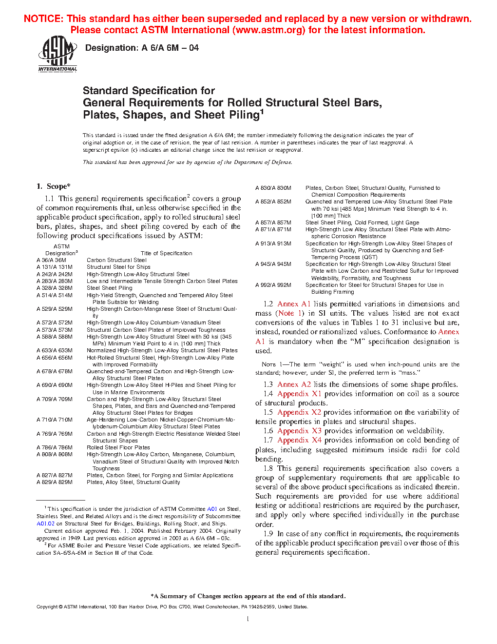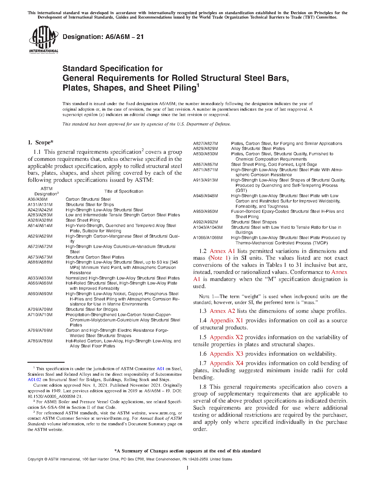 1.1 This general requirements specification2 covers a group of common requirements that, unless otherwise specified in the applicable product specification, apply to rolled structural steel bars, plates, shapes, and sheet piling covered by each of the following product specifications issued by ASTM: