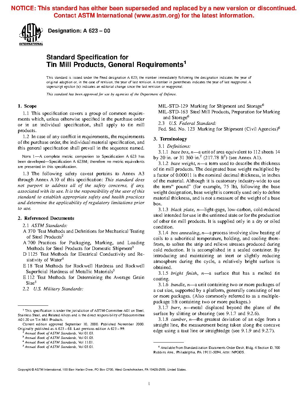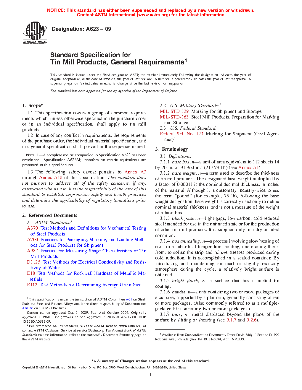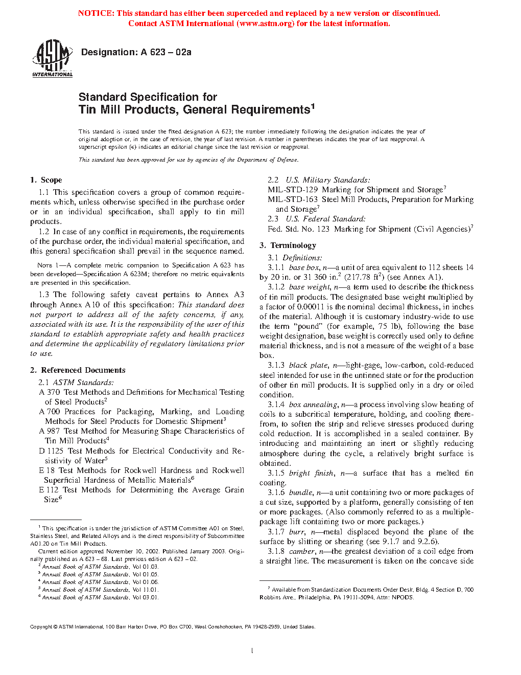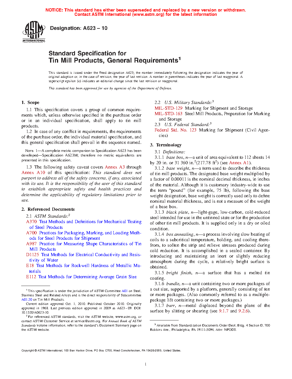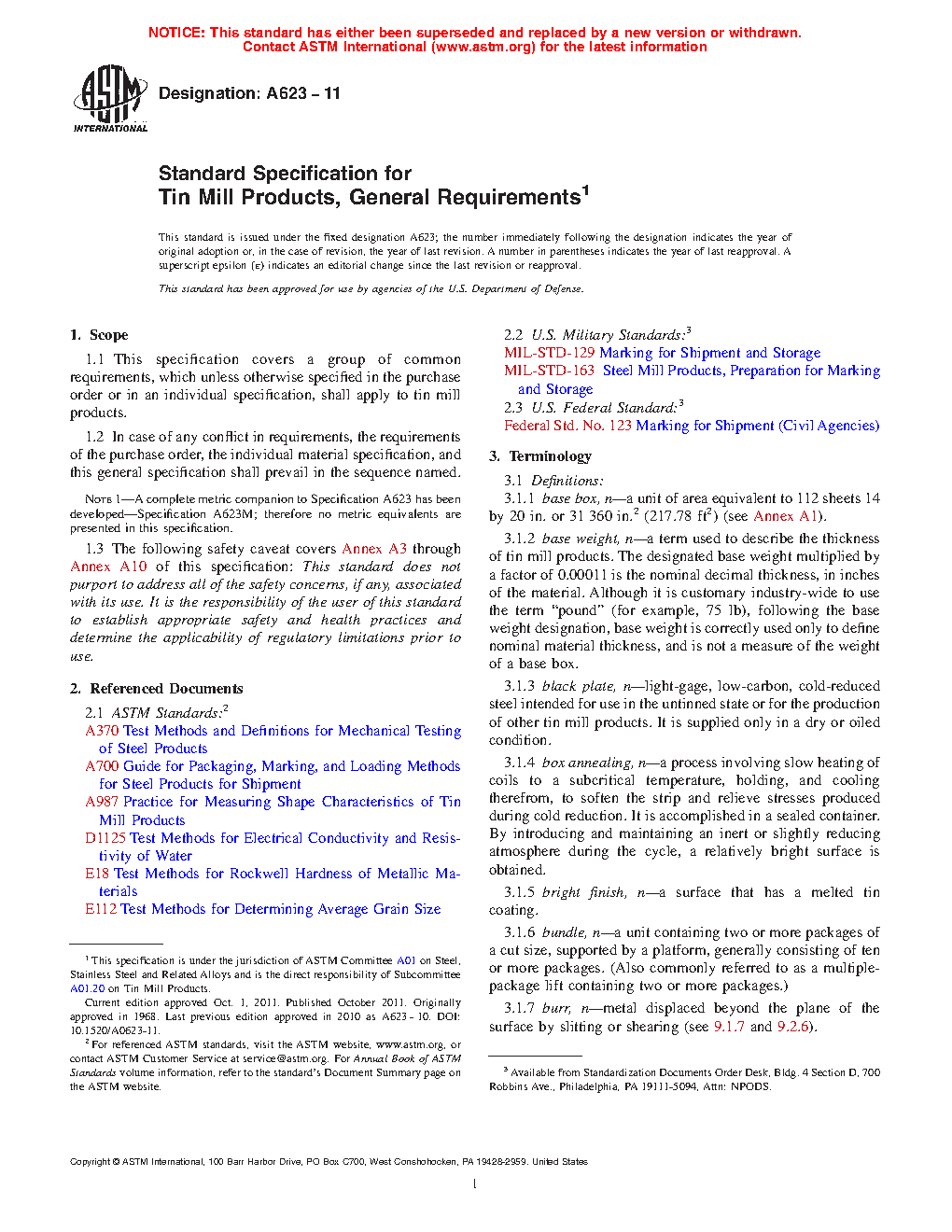 1.1 This specification covers a group of common requirements which, unless otherwise specified in the purchase order or in an individual specification, shall apply to tin mill products.