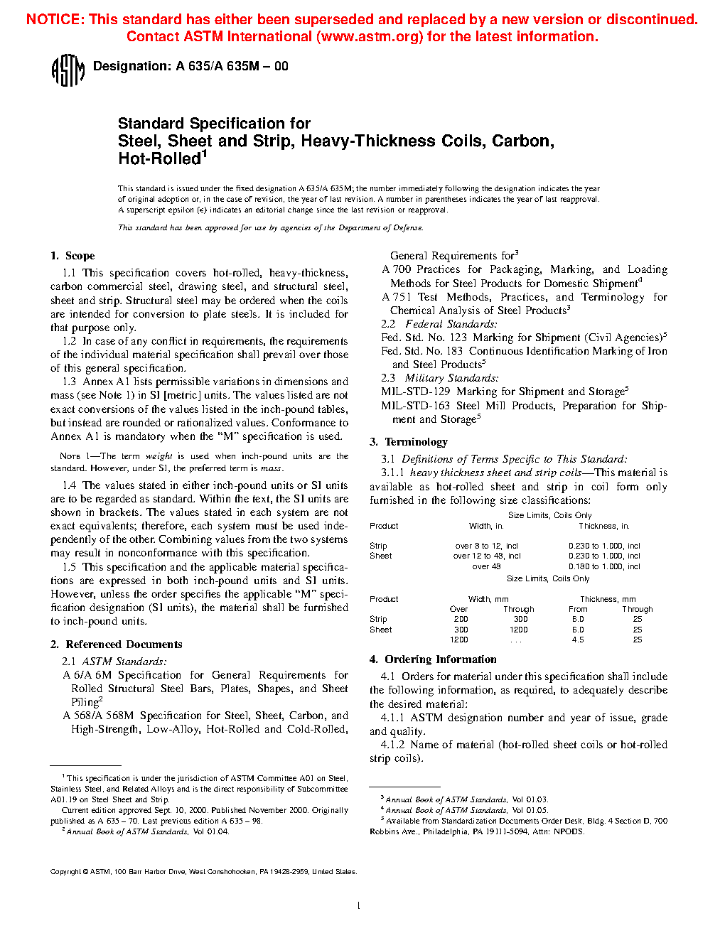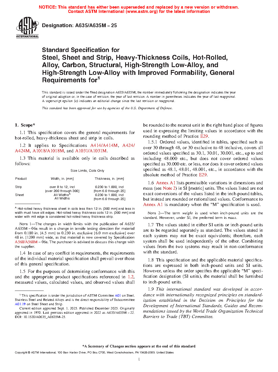 1.1 This specification covers the general requirements for hot-rolled, heavy-thickness sheet and strip in coils.