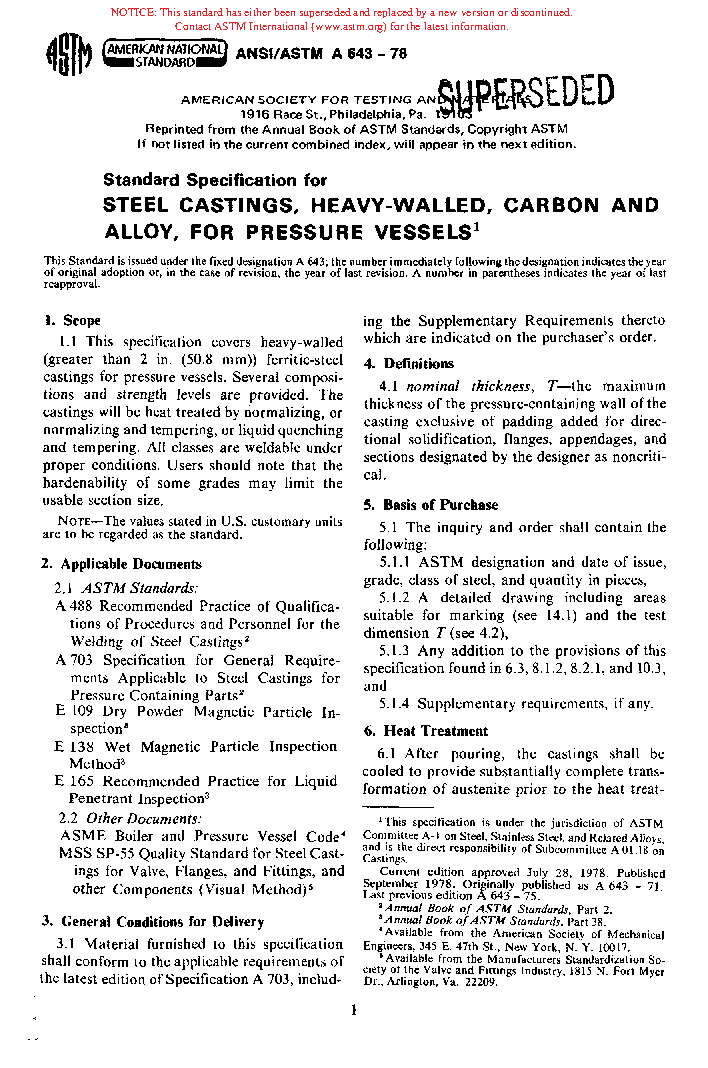 Specification for Steel Castings, Heavy-Walled, Carbon and Alloy for Pressure Vessels (Withdrawn 1982)