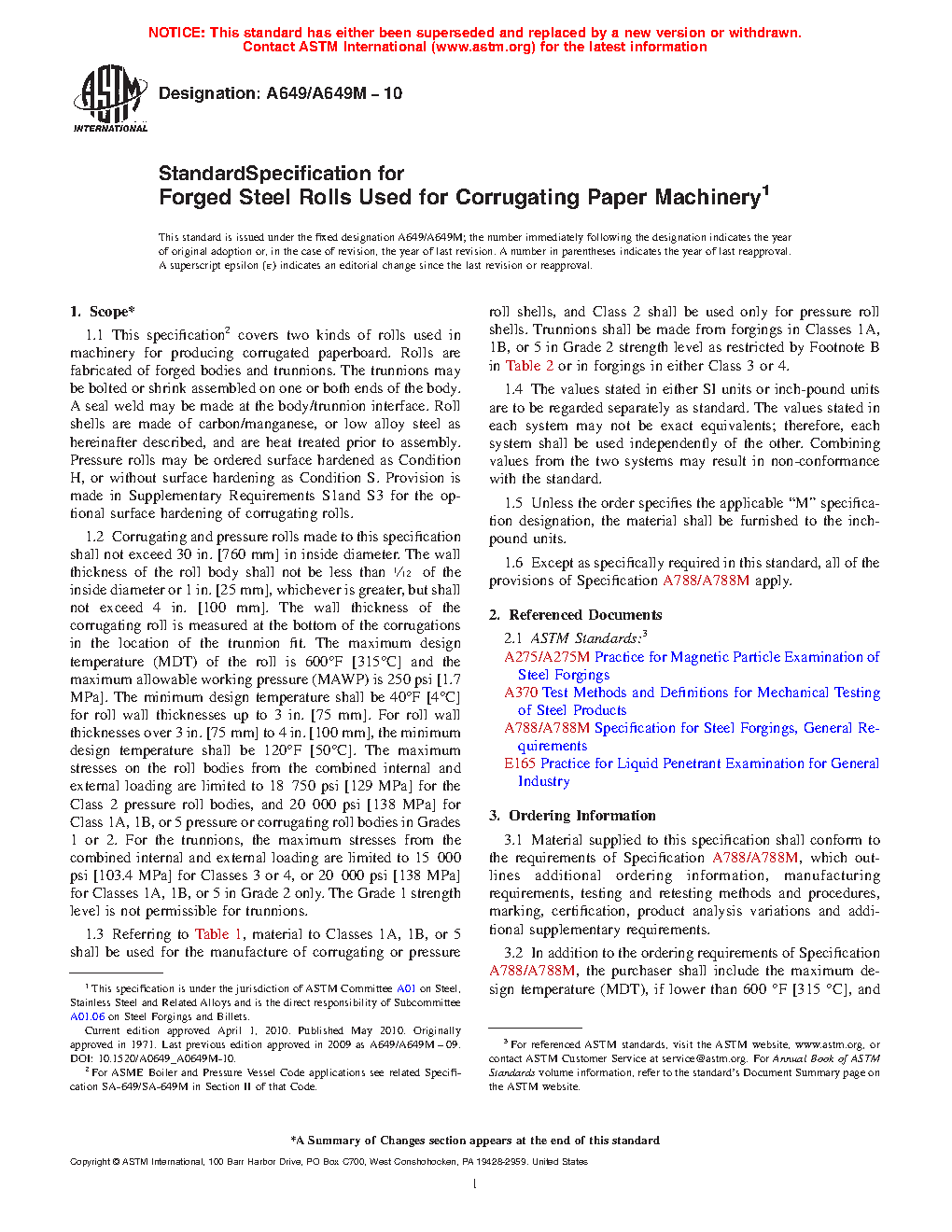 1.6 Except as specifically required in this standard, all of the provisions of Specification A788/A788M apply.