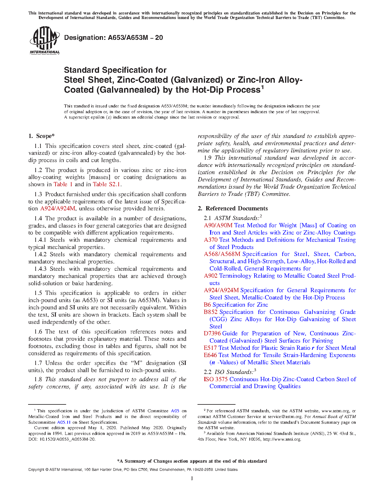 1.2 The product is produced in various zinc or zinc-iron alloy-coating weights [masses] or coating designations as shown in Table 1 and in Table S2.1.