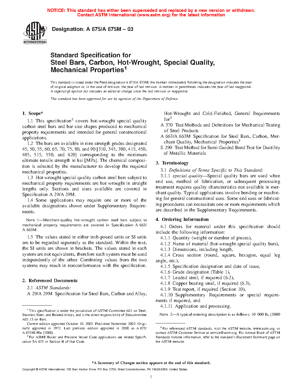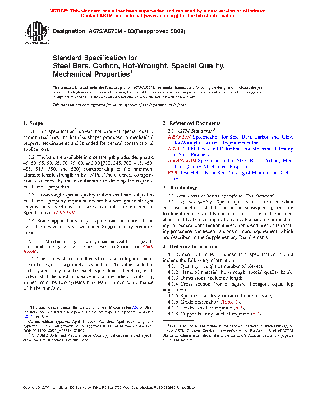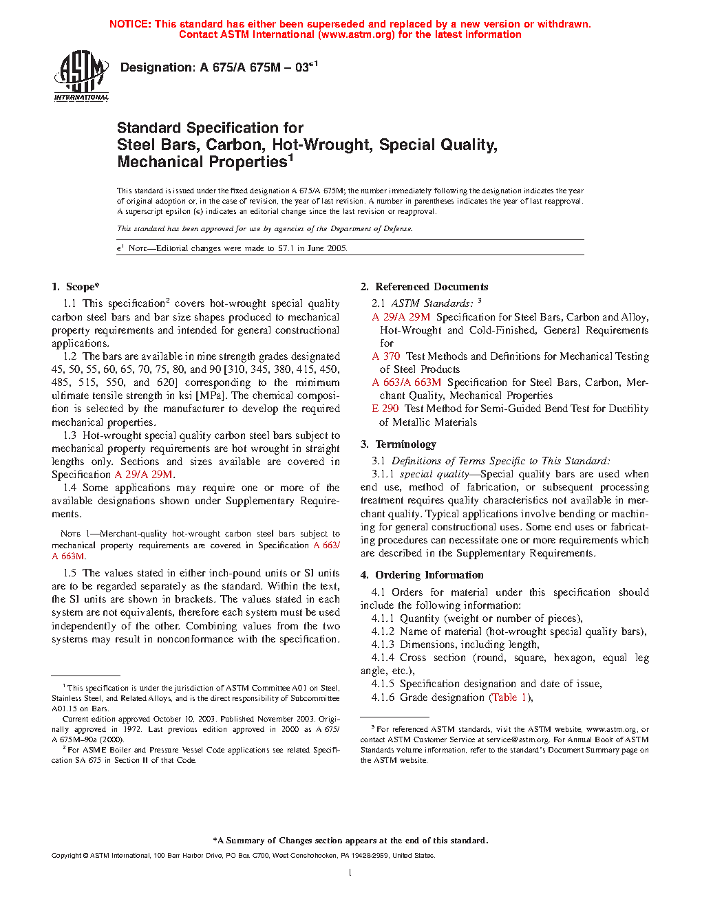 Note 1: Merchant-quality hot-wrought carbon steel bars subject to mechanical property requirements are covered in Specification A663/A663M.