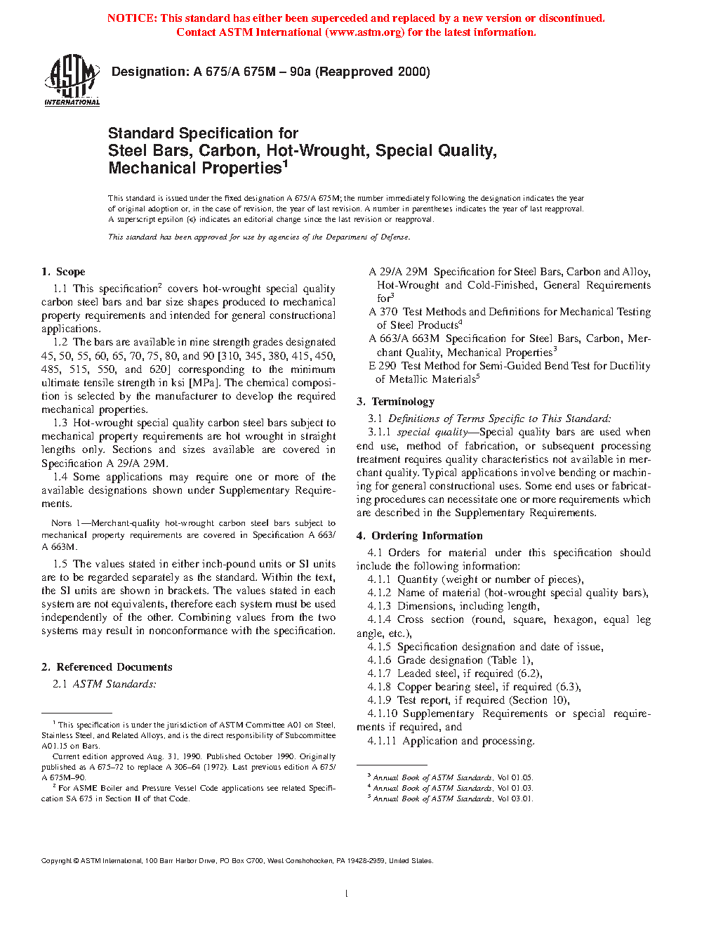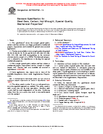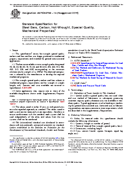 1.1 This specification2 covers hot-wrought special quality carbon steel bars and bar size shapes produced to mechanical property requirements and intended for general constructional applications.
