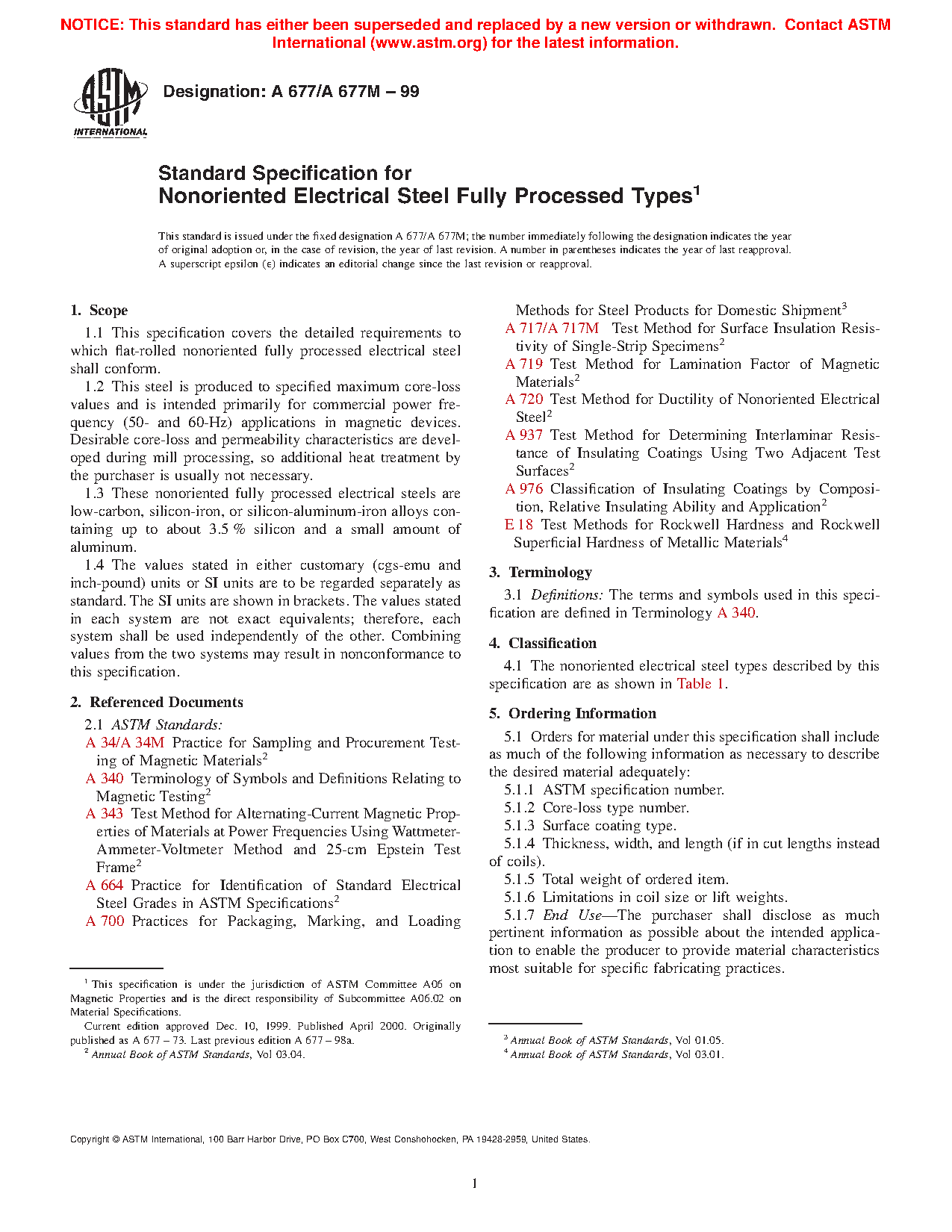 Standard Specification for Nonoriented Electrical Steel Fully Processed Types