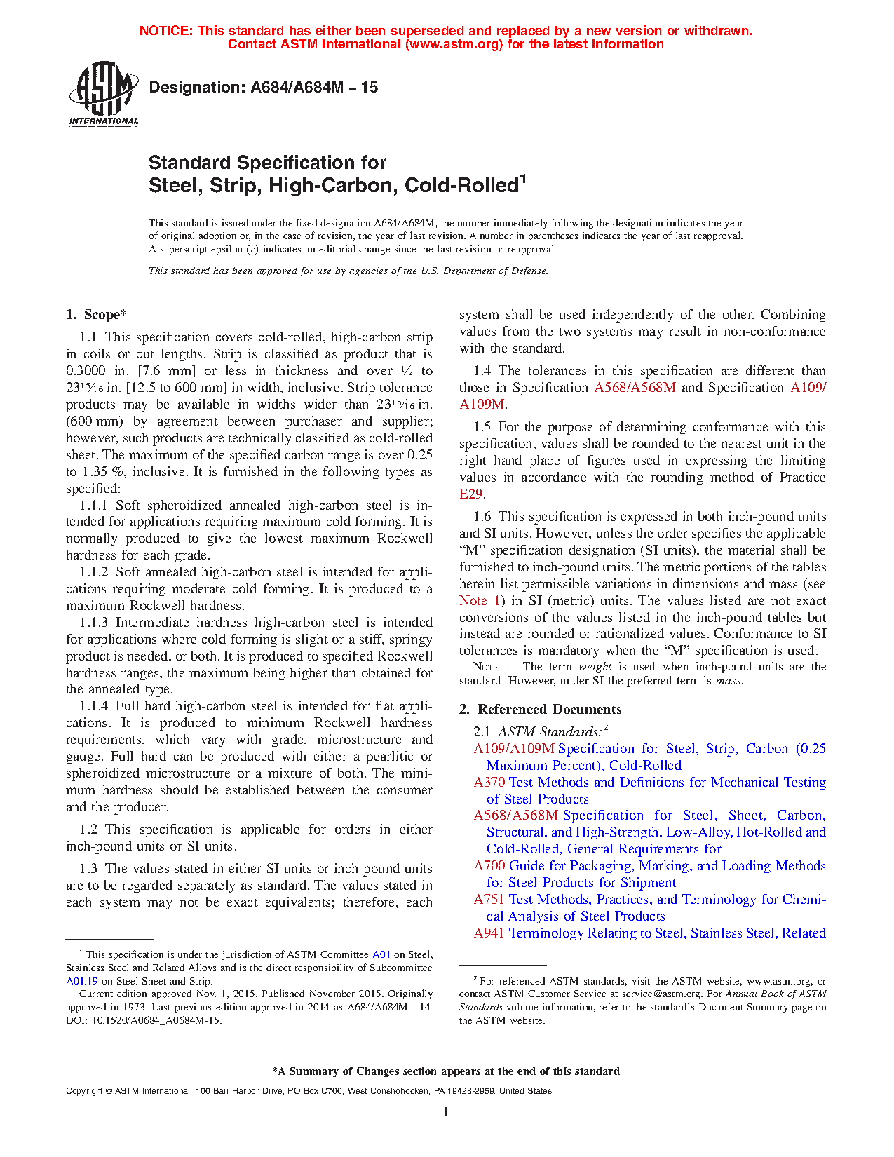 1.1 This specification covers cold-rolled, high-carbon strip. It is furnished in the following types as specified: