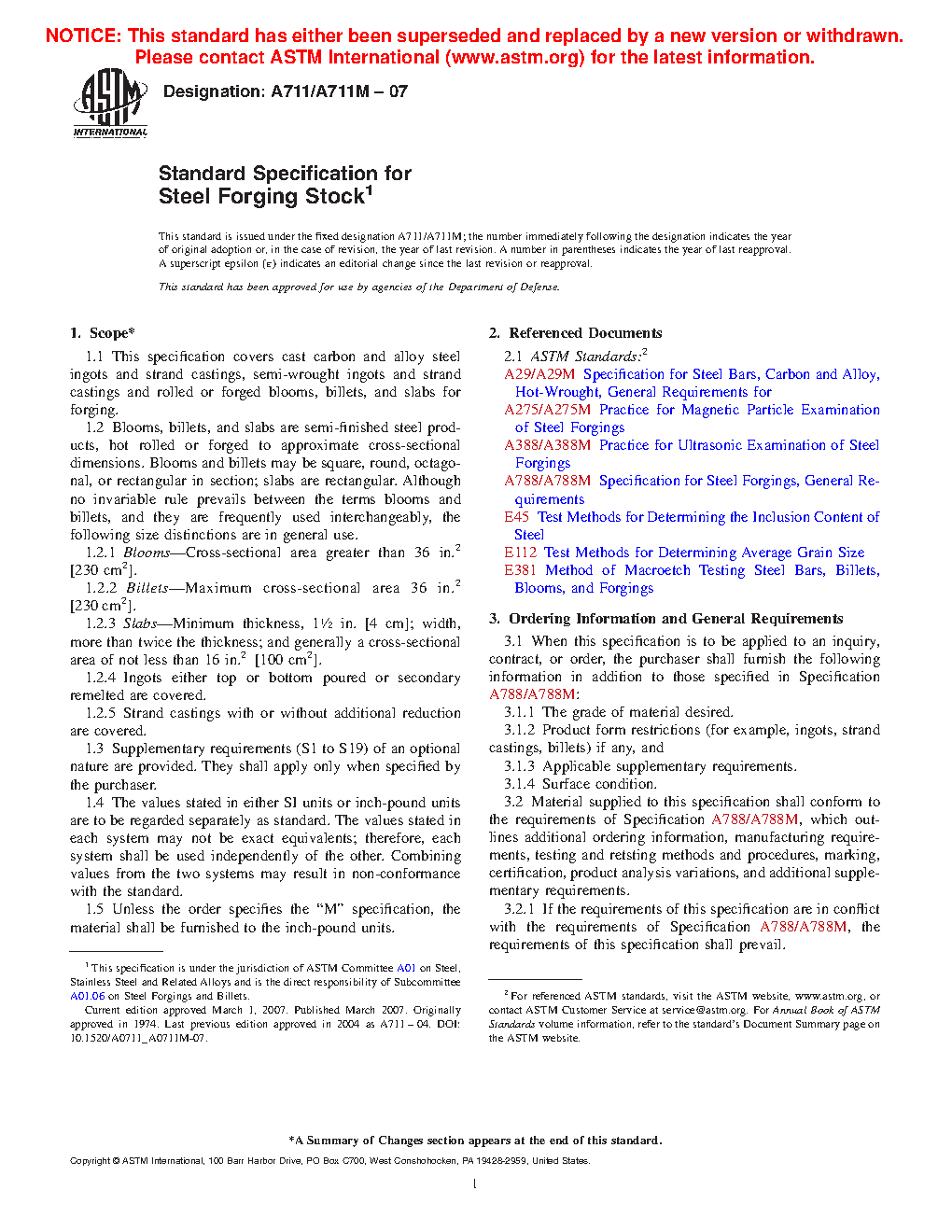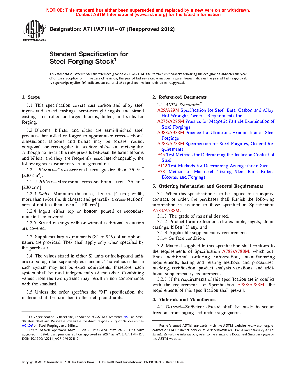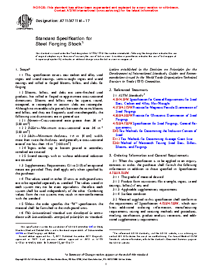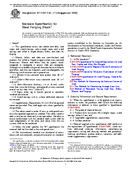 1.1 This specification covers cast carbon and alloy steel ingots and strand castings, semi-wrought ingots and strand castings and rolled or forged blooms, billets, and slabs for forging.