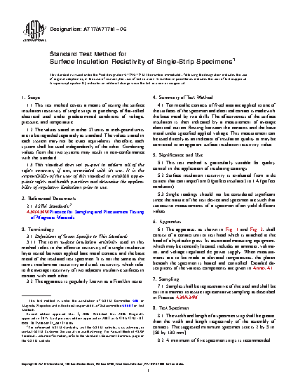 1.1 This test method covers a means of testing the surface insulation resistivity of single strips or punchings of flat-rolled electrical steel under predetermined conditions of voltage, pressure, and temperature.
