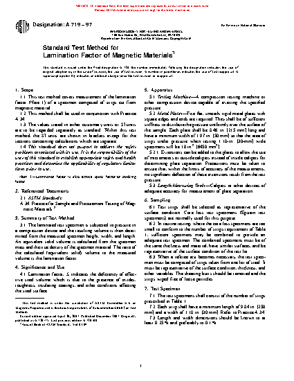 1.1 This test method covers measurement of the lamination factor (Note 1) of a specimen composed of strips cut from magnetic material.