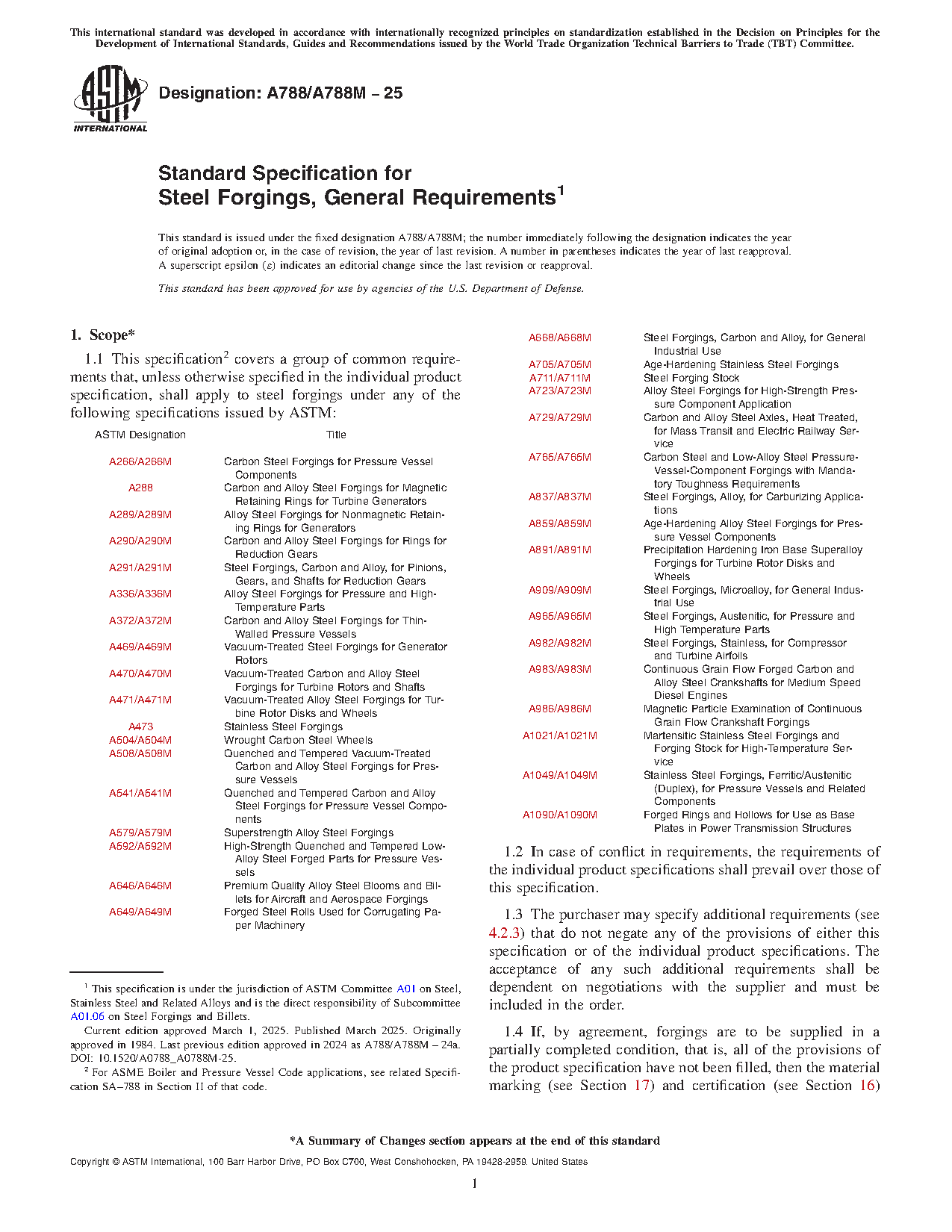 | A668/A668M | Steel Forgings, Carbon and Alloy, for General Industrial Use |