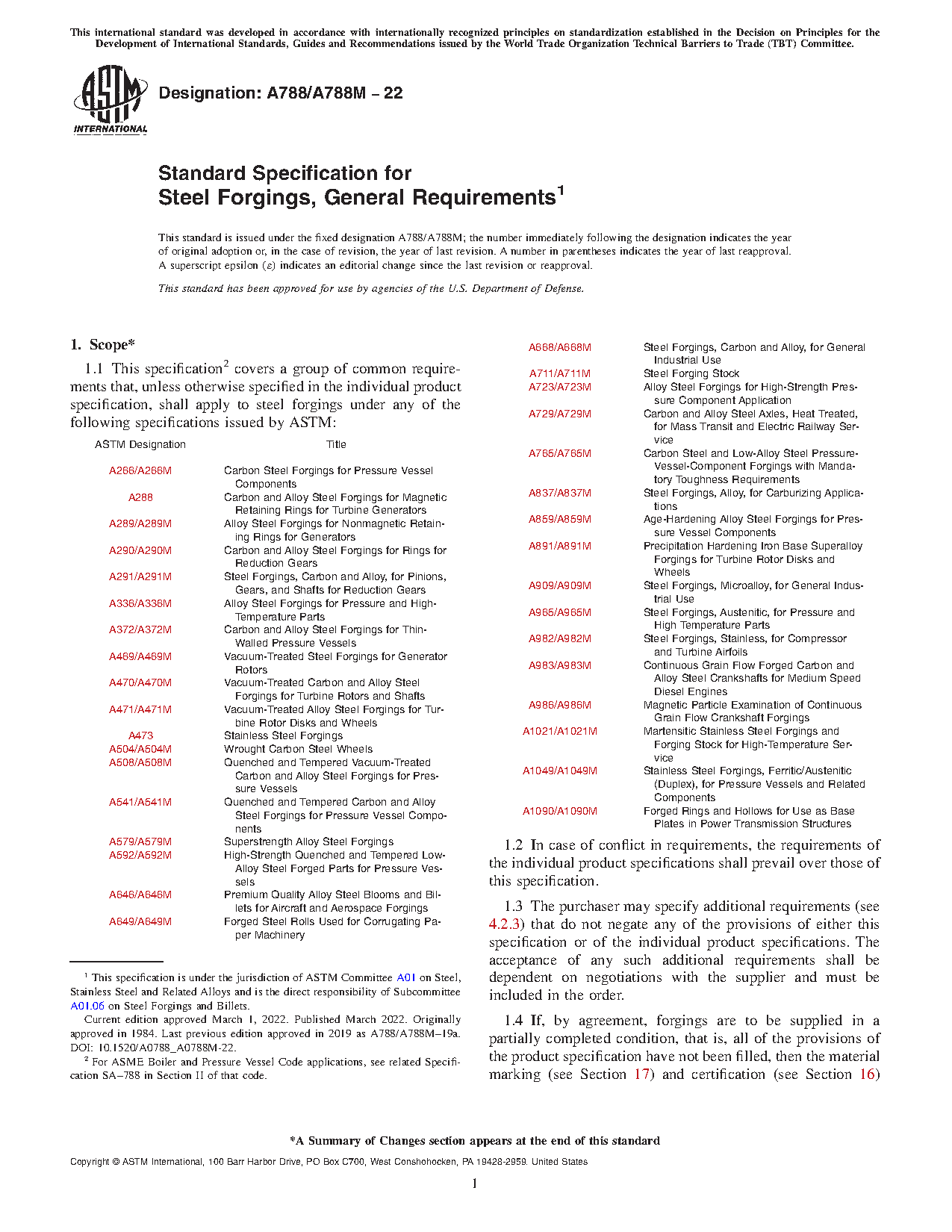 1.1 This specification2 covers a group of common requirements that, unless otherwise specified in the individual product specification, shall apply to steel forgings under any of the following specifications issued by ASTM: