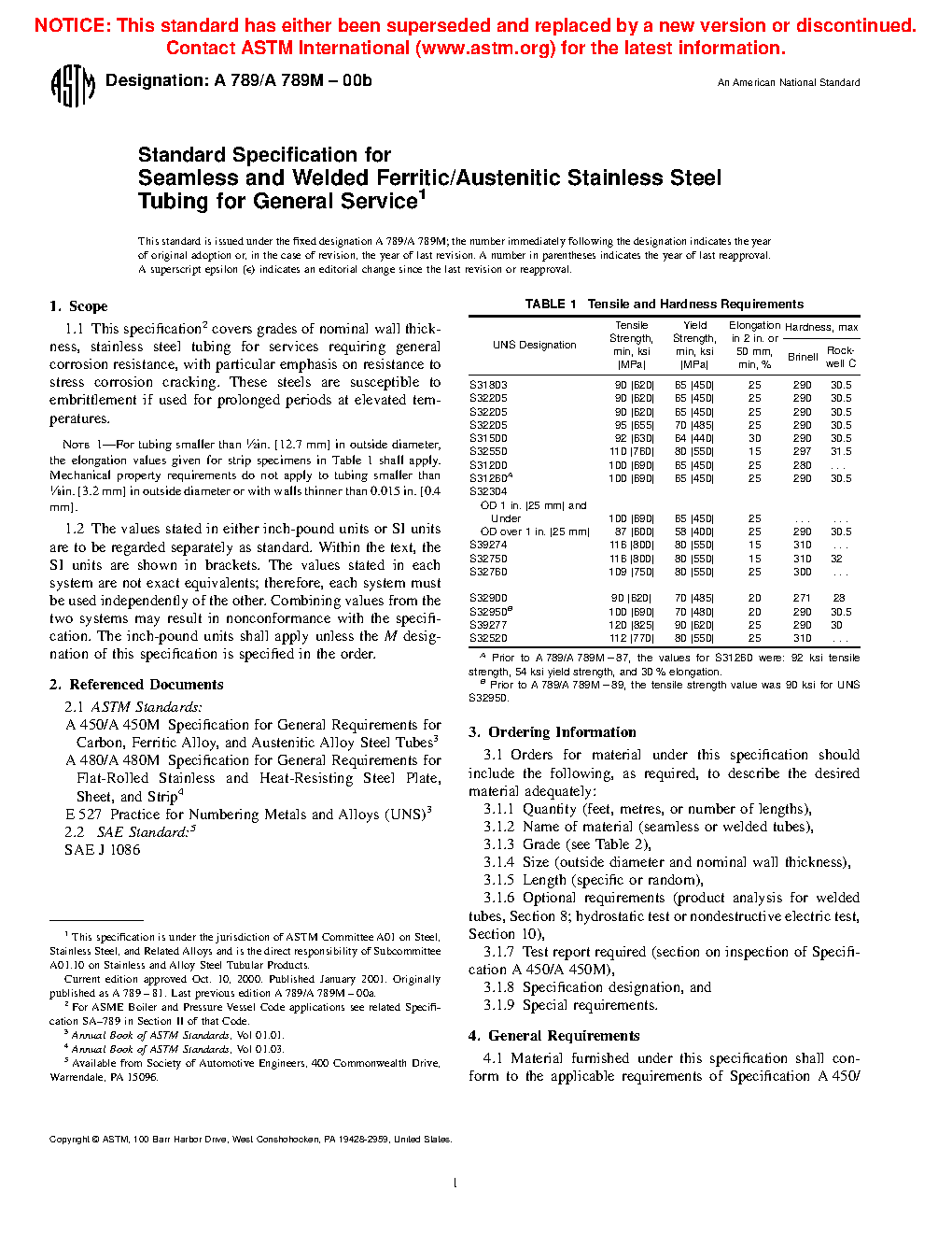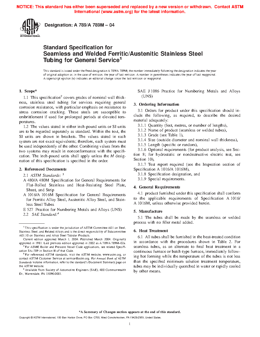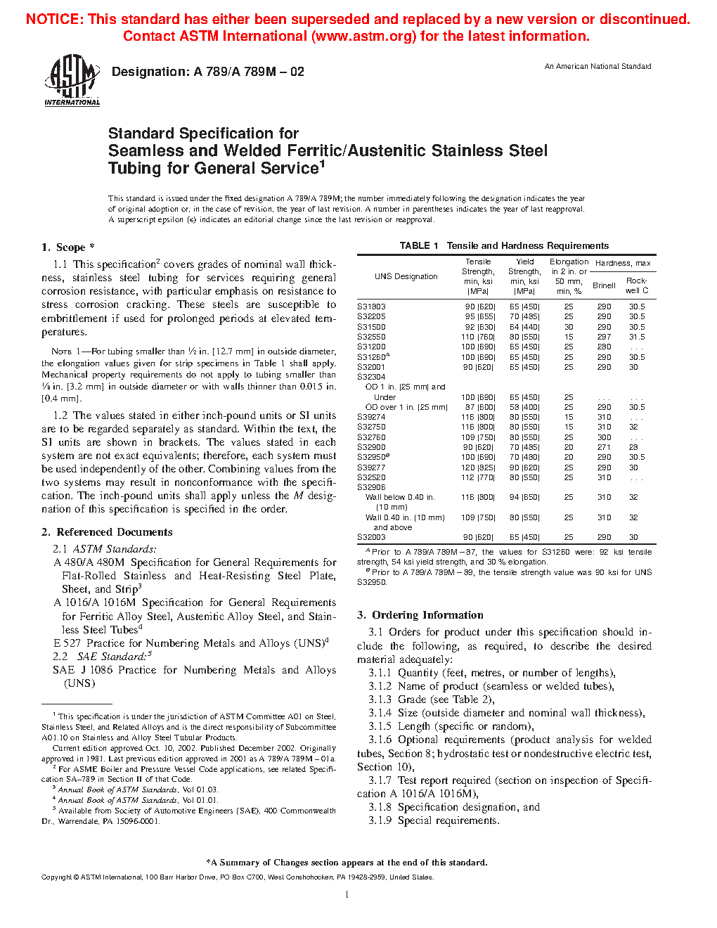 1.1 This specification² covers grades of nominal wall thickness, stainless steel tubing for services requiring general corrosion resistance, with particular emphasis on resistance to stress corrosion cracking. These steels are susceptible to embrittlement if used for prolonged periods at elevated temperatures.