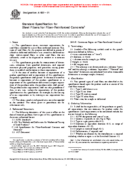 1.1 This specification covers minimum requirements for steel fibers intended for use in fiber-reinforced concrete. Five types of steel fibers for this purpose are defined as pieces of smooth or deformed cold-drawn wire; smooth or deformed cut sheet; melt-extracted fibers; mill-cut or modified cold-drawn wire steel fibers that are sufficiently small to be dispersed at random in a concrete mixture.