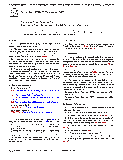 1.1 This specification covers gray iron castings that are statically cast in permanent molds.