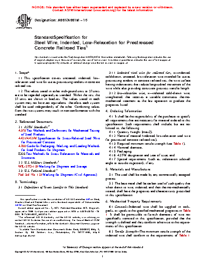 1.1 This specification covers indented, low-relaxation steel wire for use in prestressed concrete.