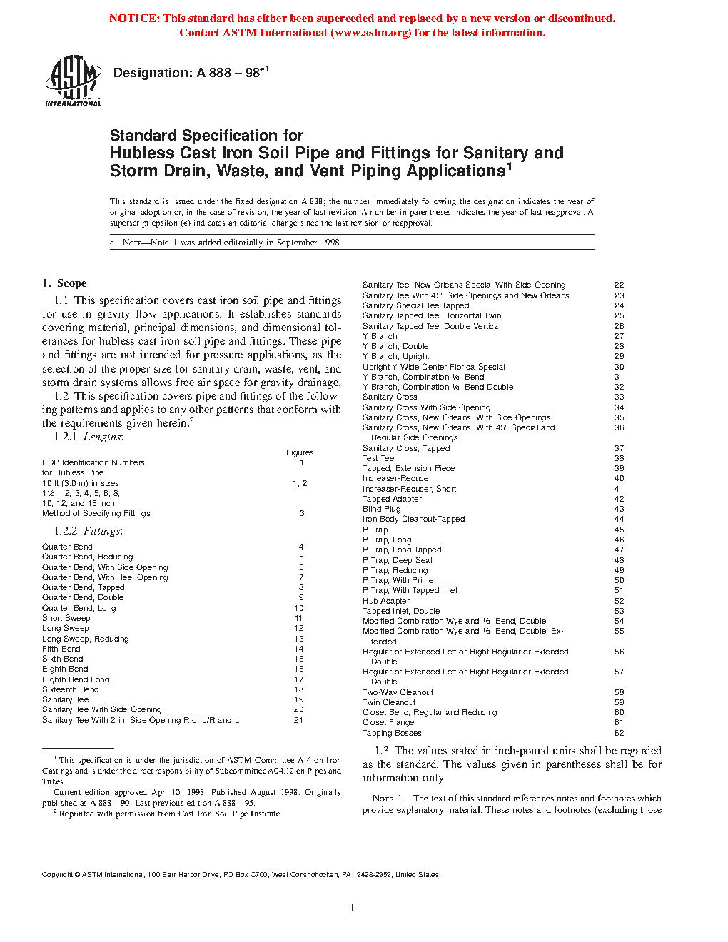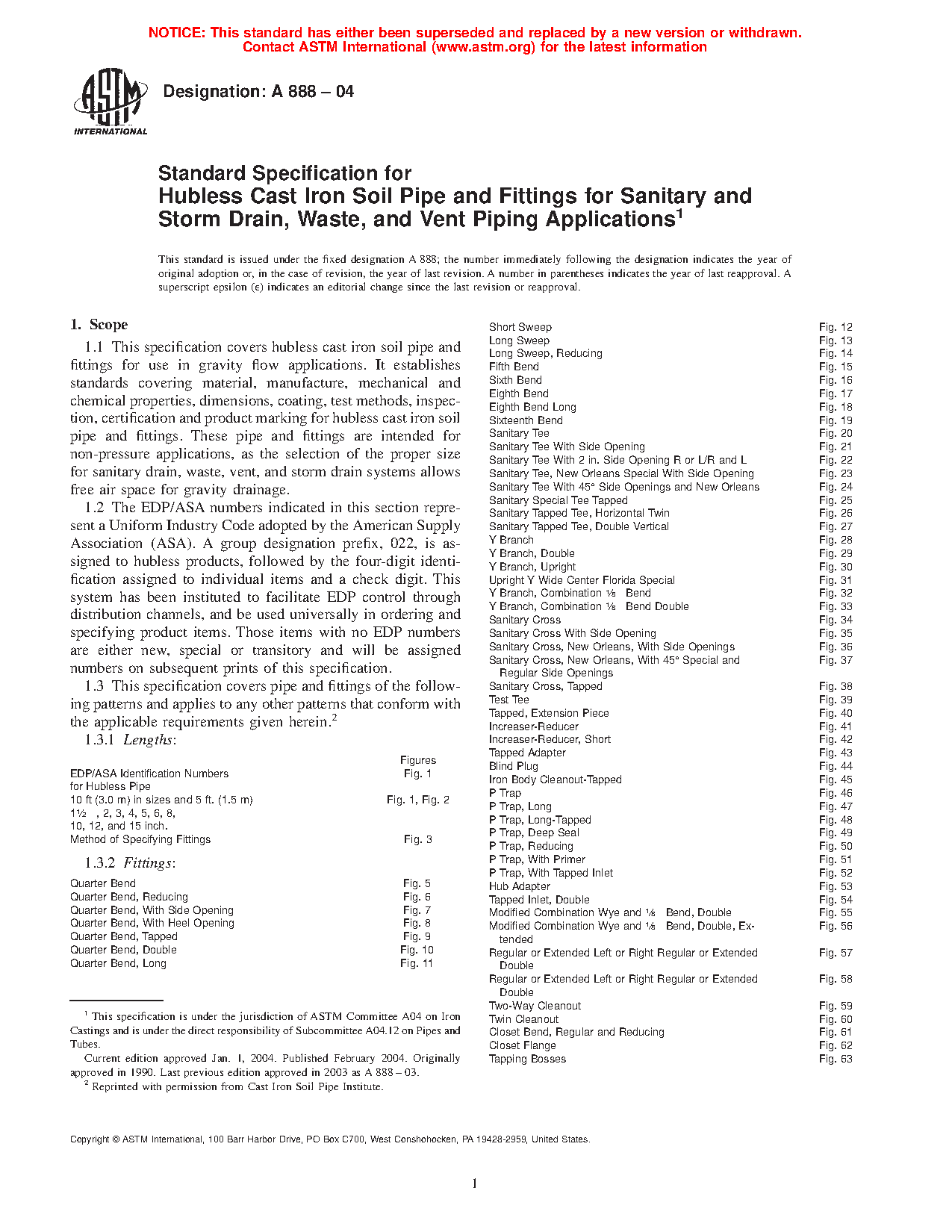 | EDP Identification Numbers for Hubless Pipe | 1 |