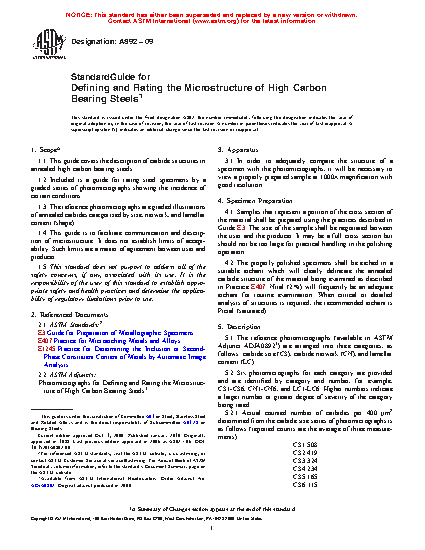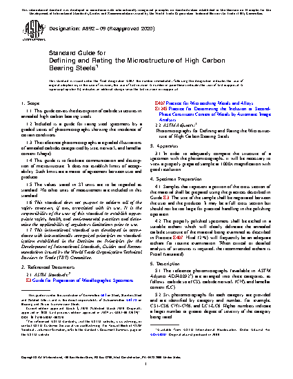 1.1 This guide covers the description of carbide structures in annealed high carbon bearing steels.
