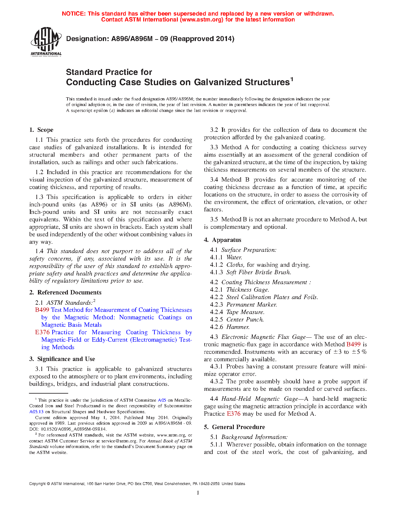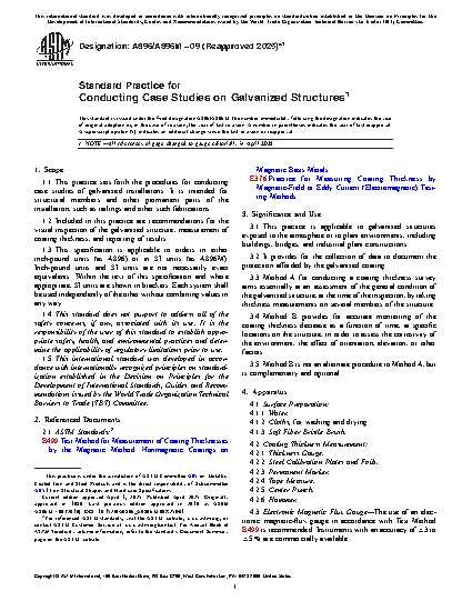 1.1 This practice sets forth the procedures for conducting case studies of galvanized installations. It is intended for structural members and other permanent parts of the installation, such as railings and other such fabrications.