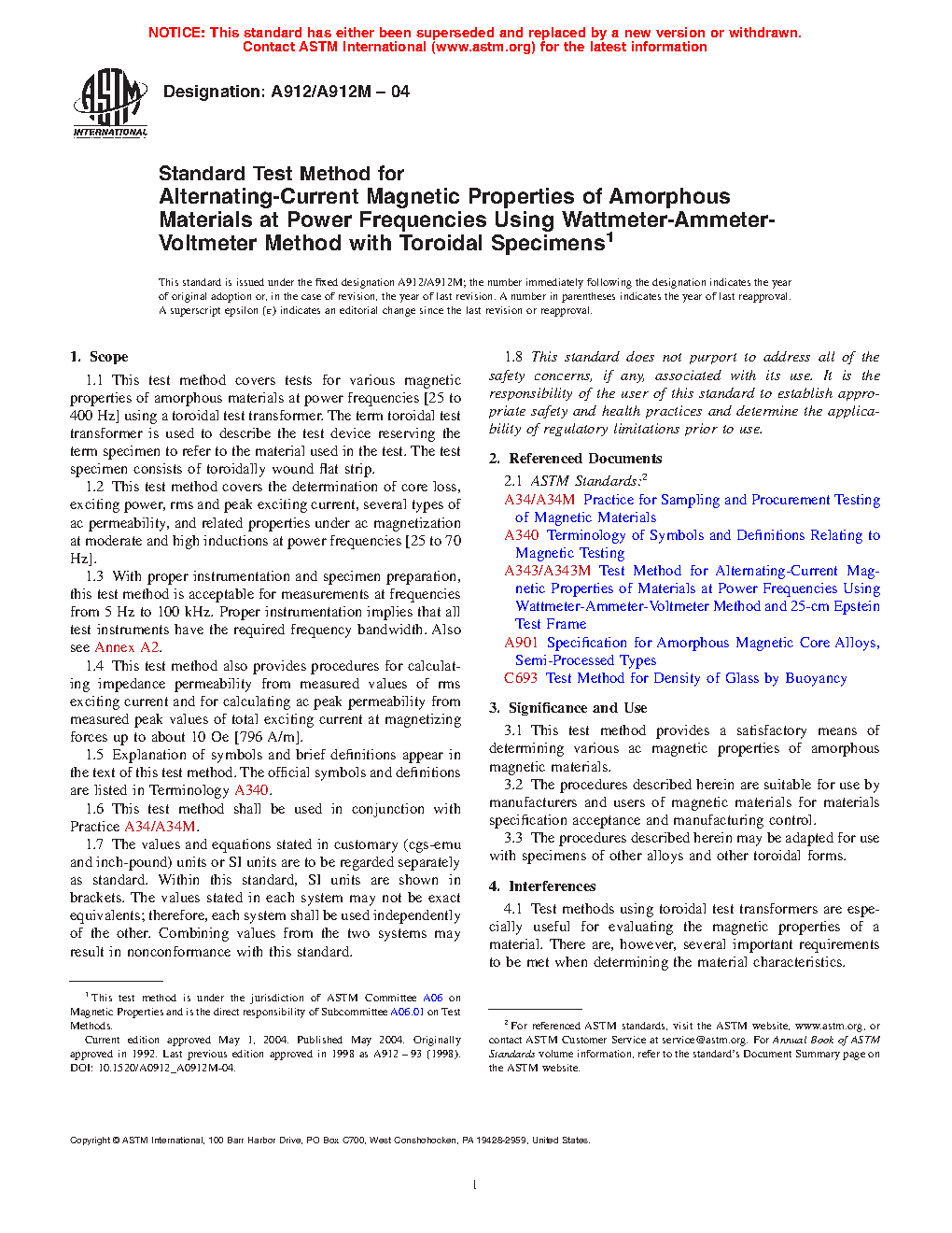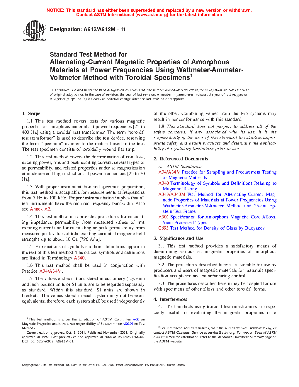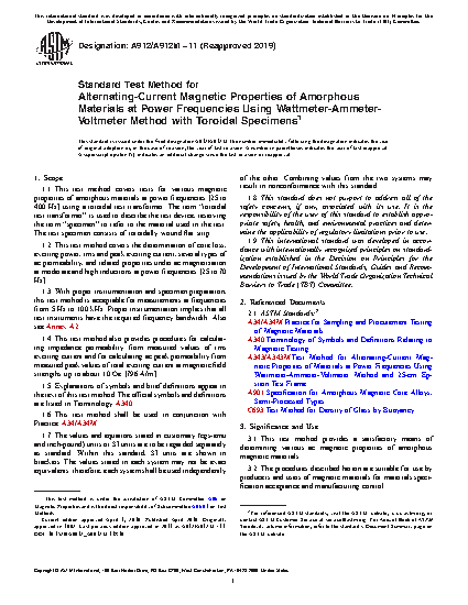 3.1 This test method provides a satisfactory means of determining various ac magnetic properties of amorphous magnetic materials.